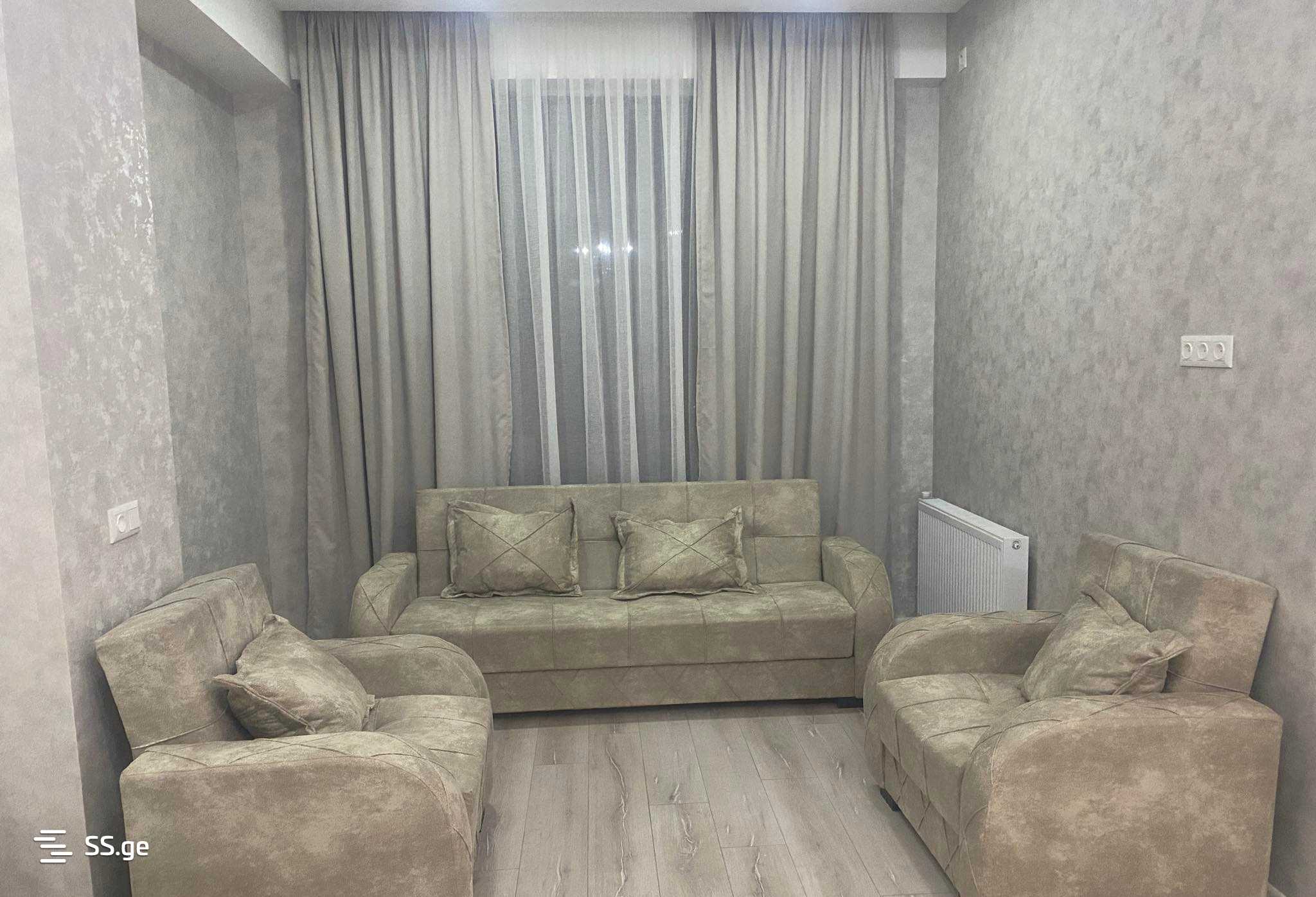 For rent, an unoccupied apartment 5 minutes away from the Upper Samgori metro in a newly built building, with a gated yard and entrance hall, two bedrooms. The apartment is cozy and bright, equipped with all necessary appliances.