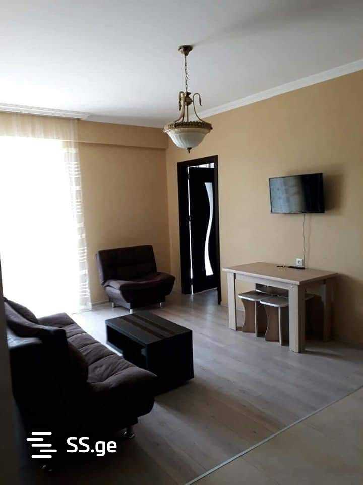 A three-room apartment is for rent near Guramishvili Metro, with two bedrooms, arranged. It is rented for a minimum of one year.