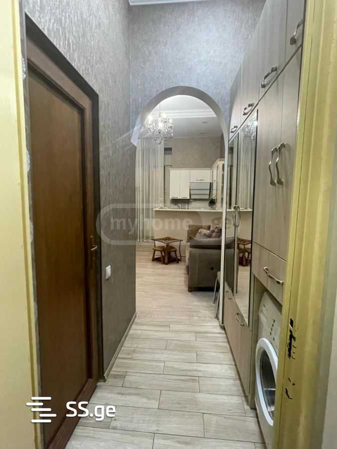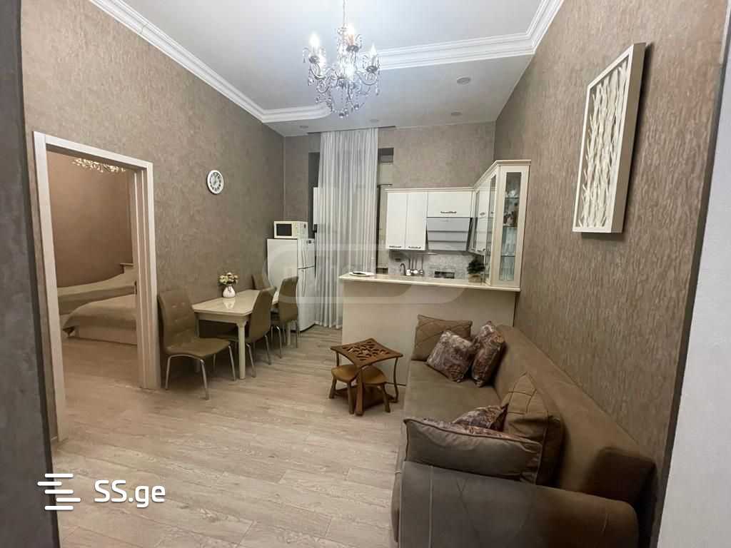 Three-room apartment for rent, two bedrooms, studio-type living room/kitchen. Newly renovated, furnished, with furniture and appliances. Beglar Akhospireli street 6, near Gudiashvili garden. near the center of Freedom Square. There is a high beletage, entrance from the hall