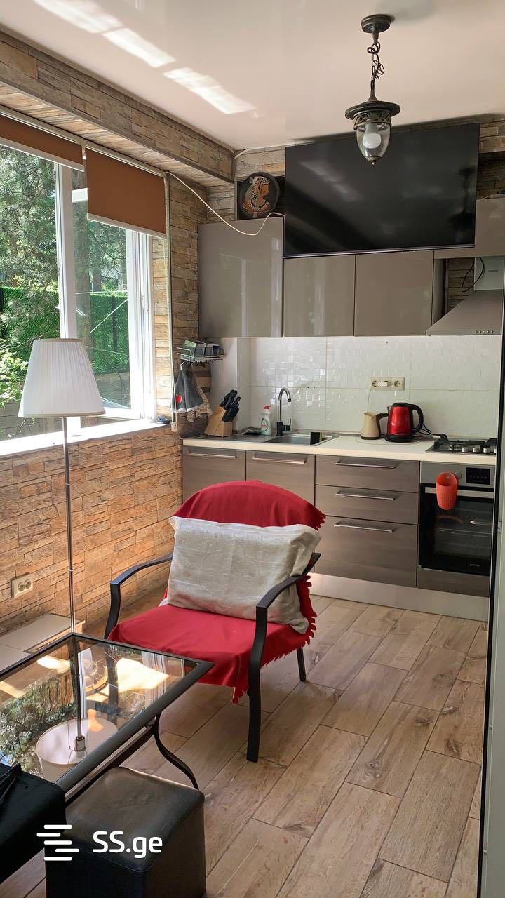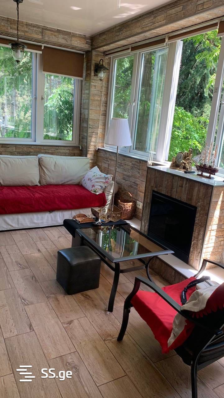 For rent 3-room apartment in Tskneti, 7 km from Vake Park, 2 bedrooms + living room with kitchen, closed veranda with kitchen, working fireplace. The house is located in the center of the village, near a bus stop, infrastructure, church