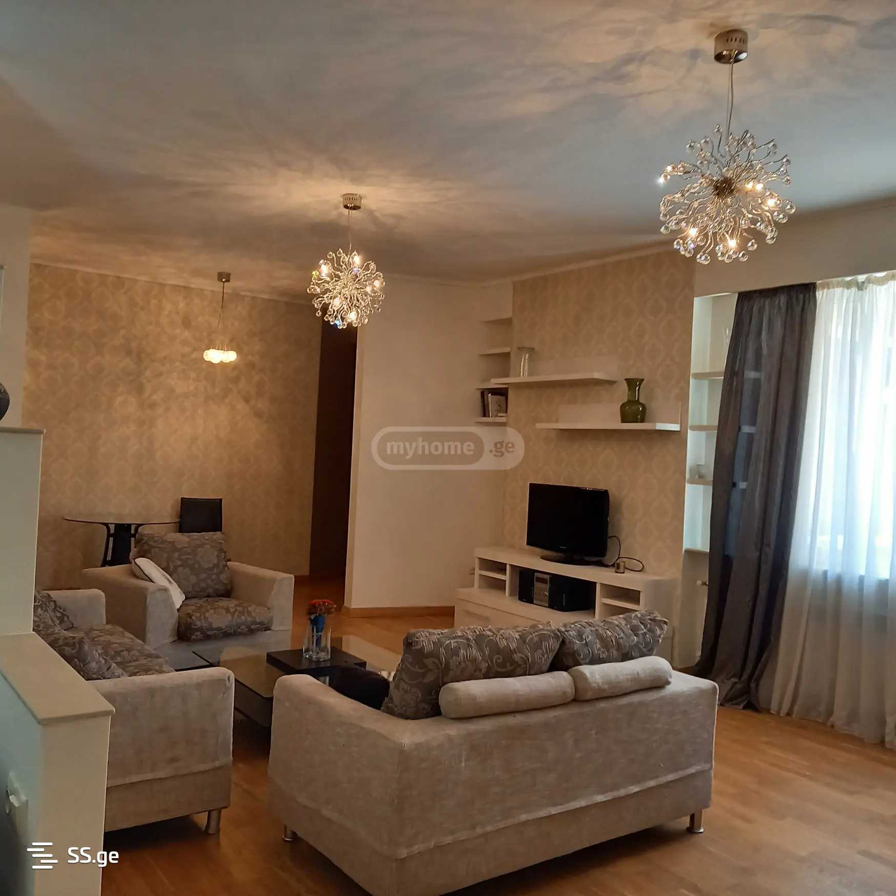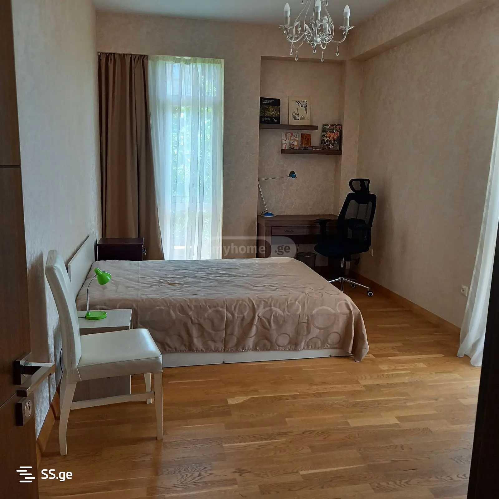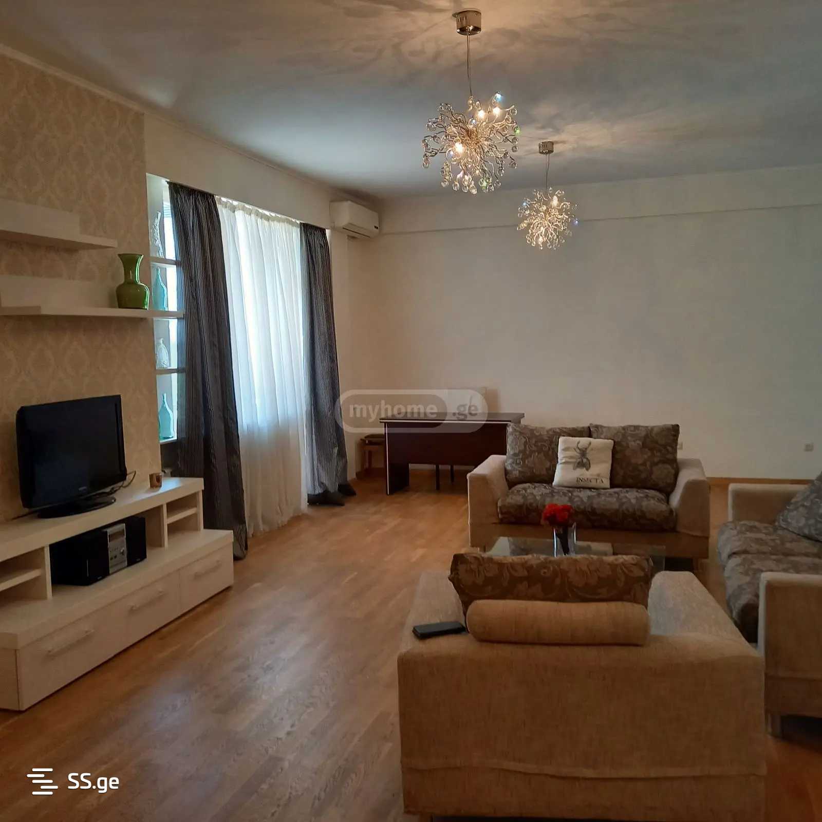 The apartment is located on the 5th floor. The elevator opens directly by the doors. 125 square meters. 2 bedrooms, a kitchen separated from the living room with a window, 1 bathroom and toilet, a spacious balcony around the perimeter, all rooms open to the balcony, renovated, furnished with all necessary items. Wooden floor, very bright apartment. Parking under the building.