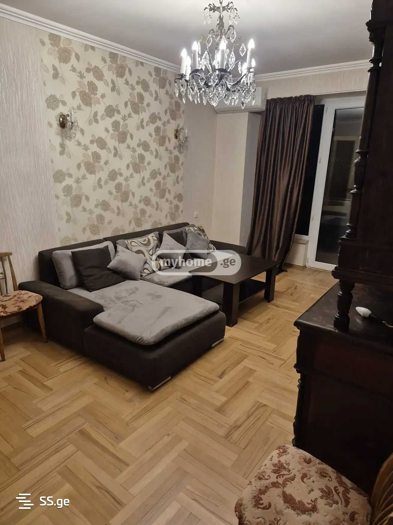 Apartment for rent on Kekelidze Street, renovated, furnished; kitchen and bathroom with their appliances (washing machine, dishwasher, gas stove, microwave, televisions, etc.), equipped with dishes and household items, central heating, winter-summer equipment, with very nice views of Tbilisi.
