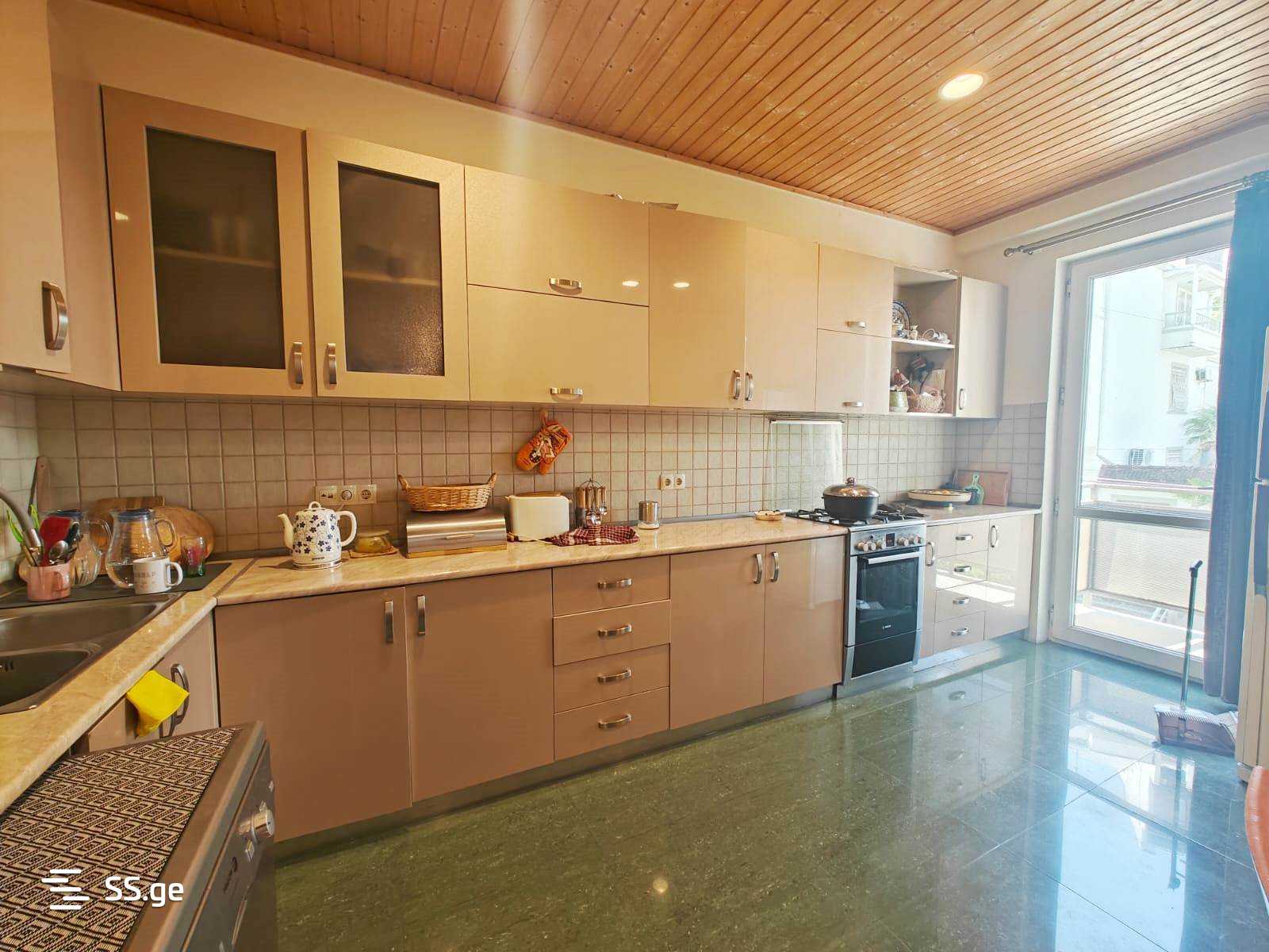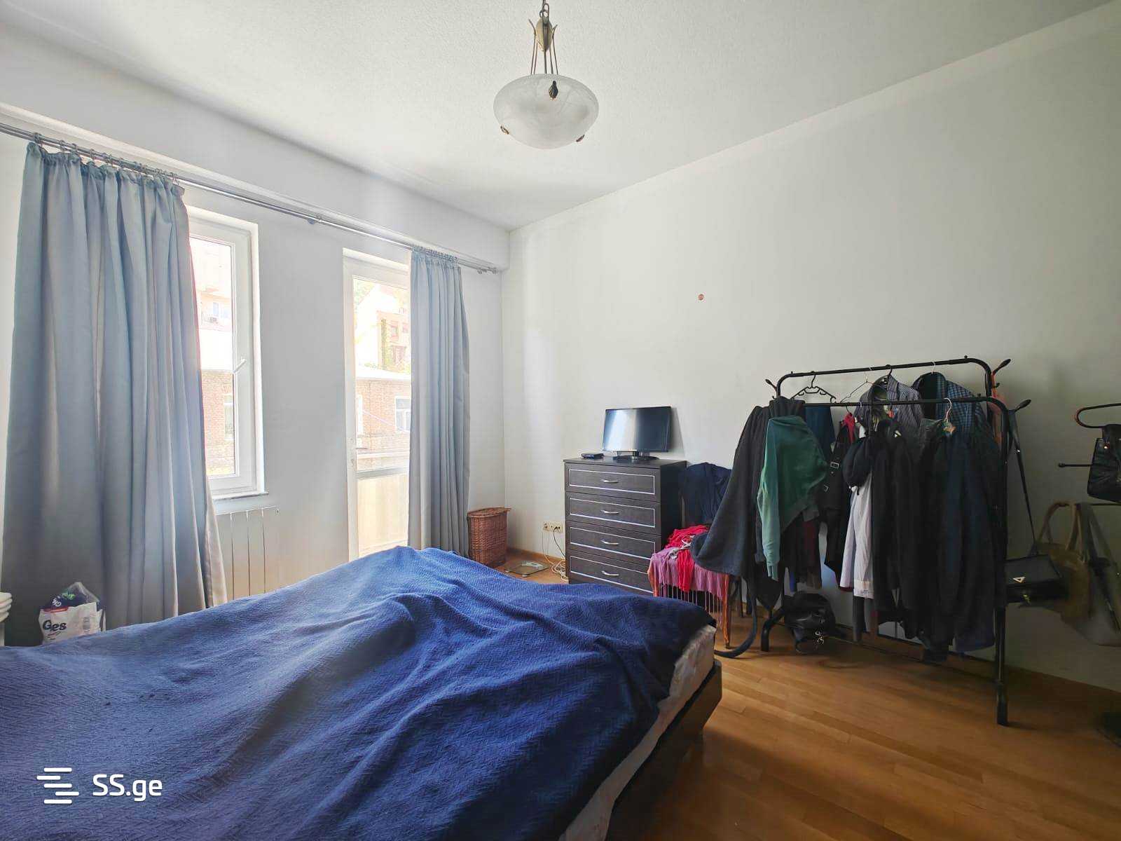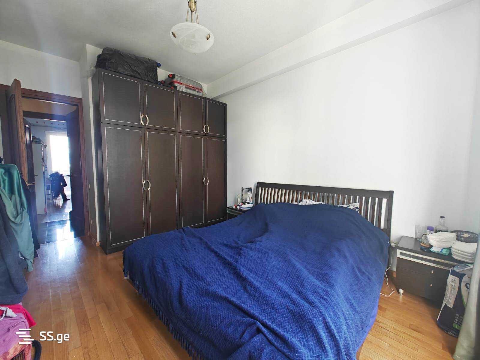For rent: 3-room apartment on K'obulet'is street in a newly built building, with repairs, 110 sq.m, on the 3rd (6th) floor, with a balcony in every room, 2 bedrooms, furnished and equipped with appliances, 2 bathrooms, large isolated kitchen, garage