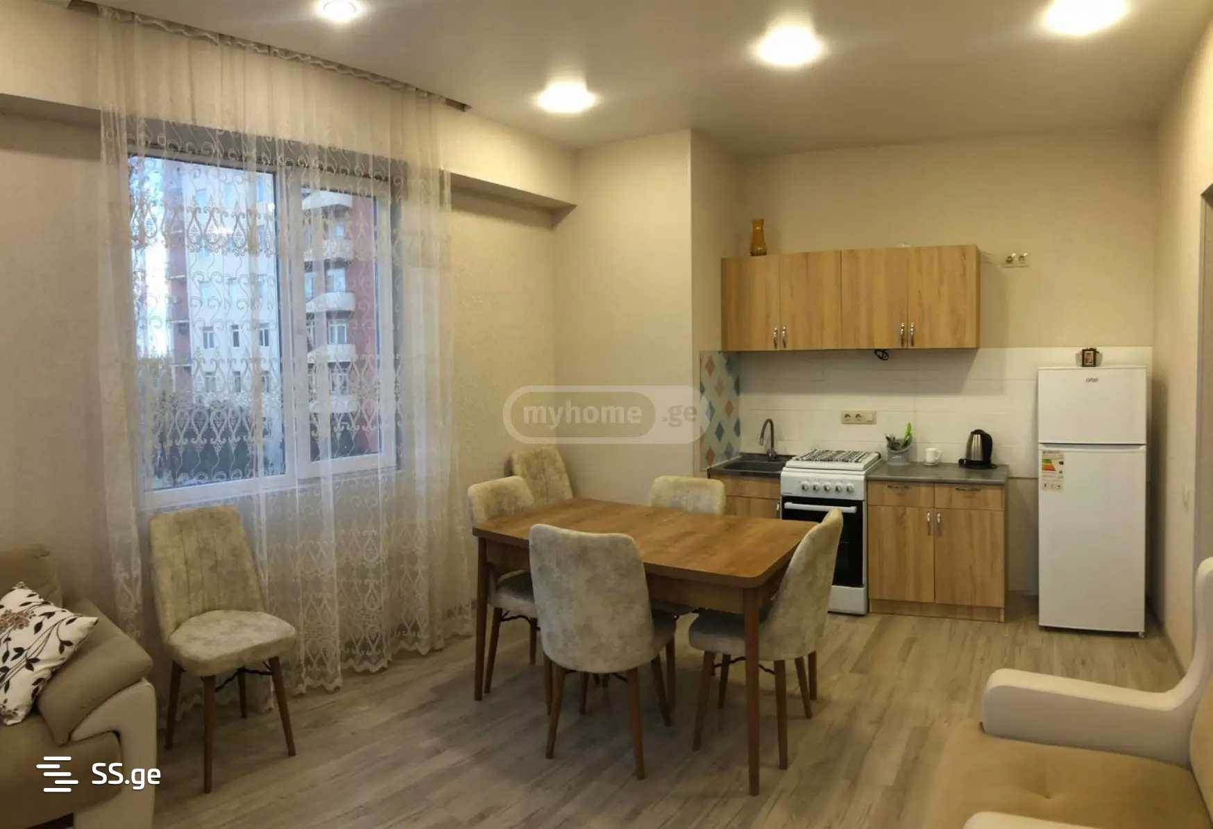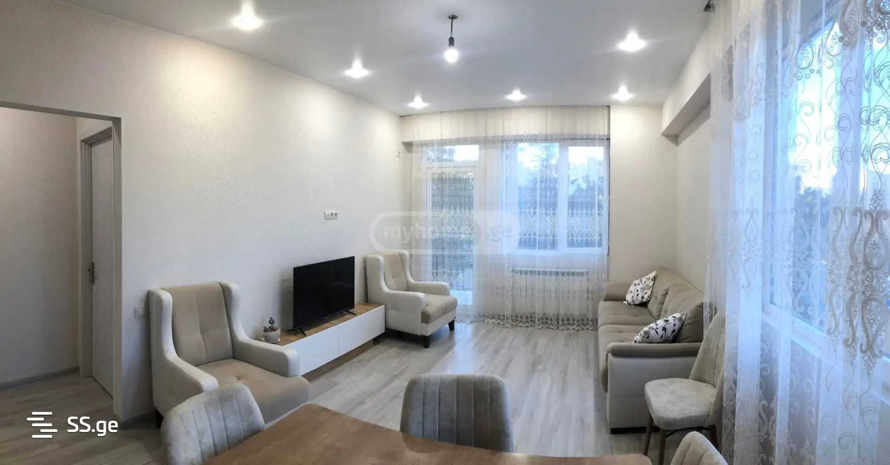 A newly renovated apartment is rented in Varketili with 2 months advance payment, equipped with all furniture and appliances.
