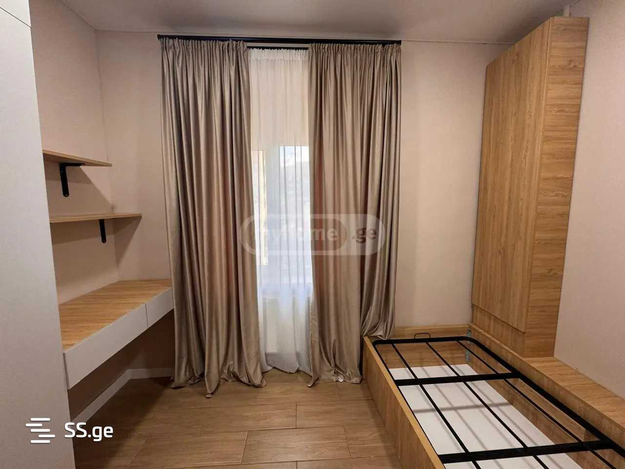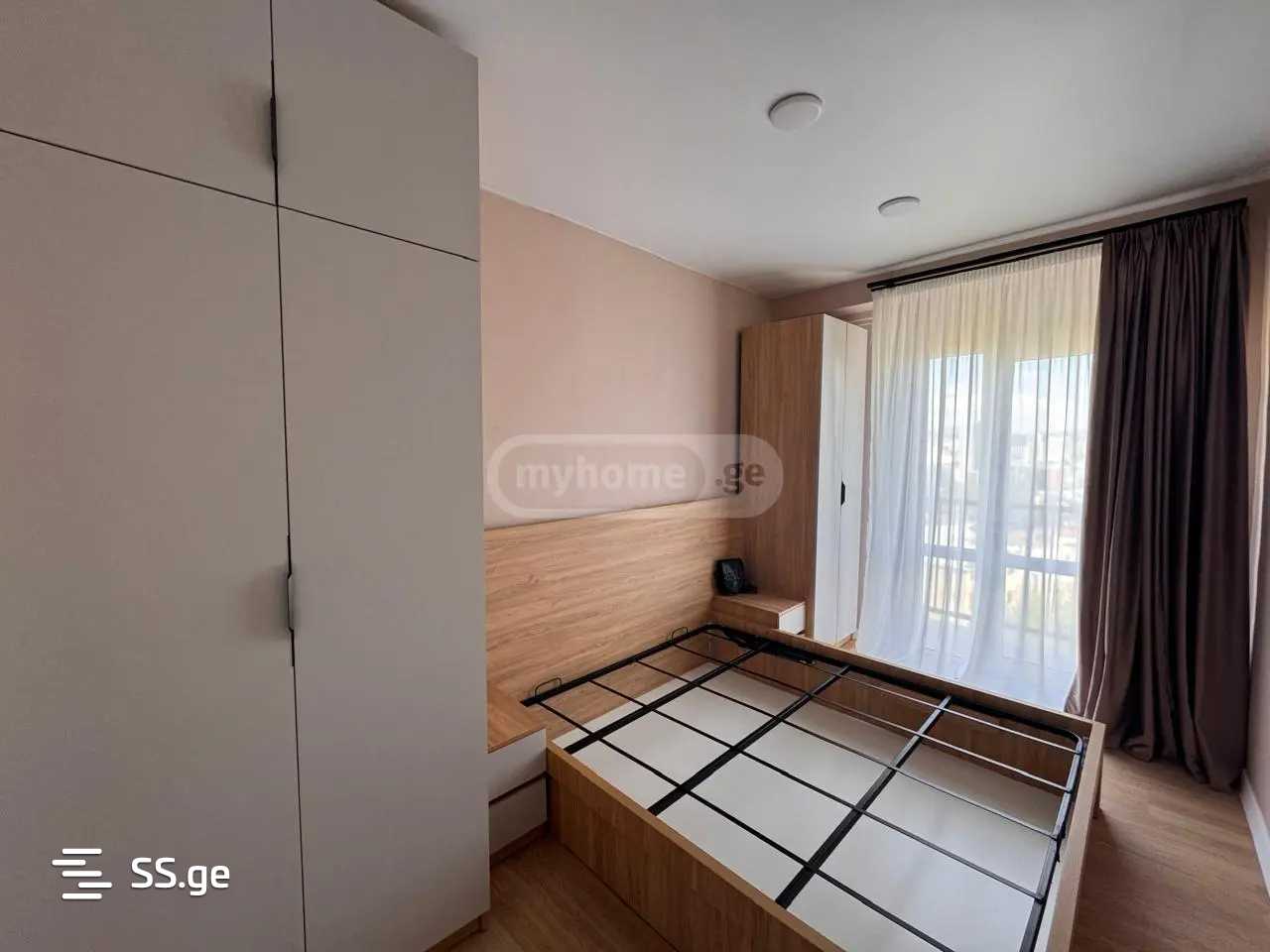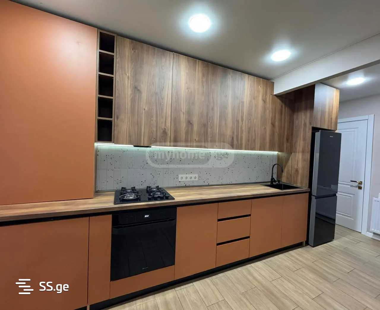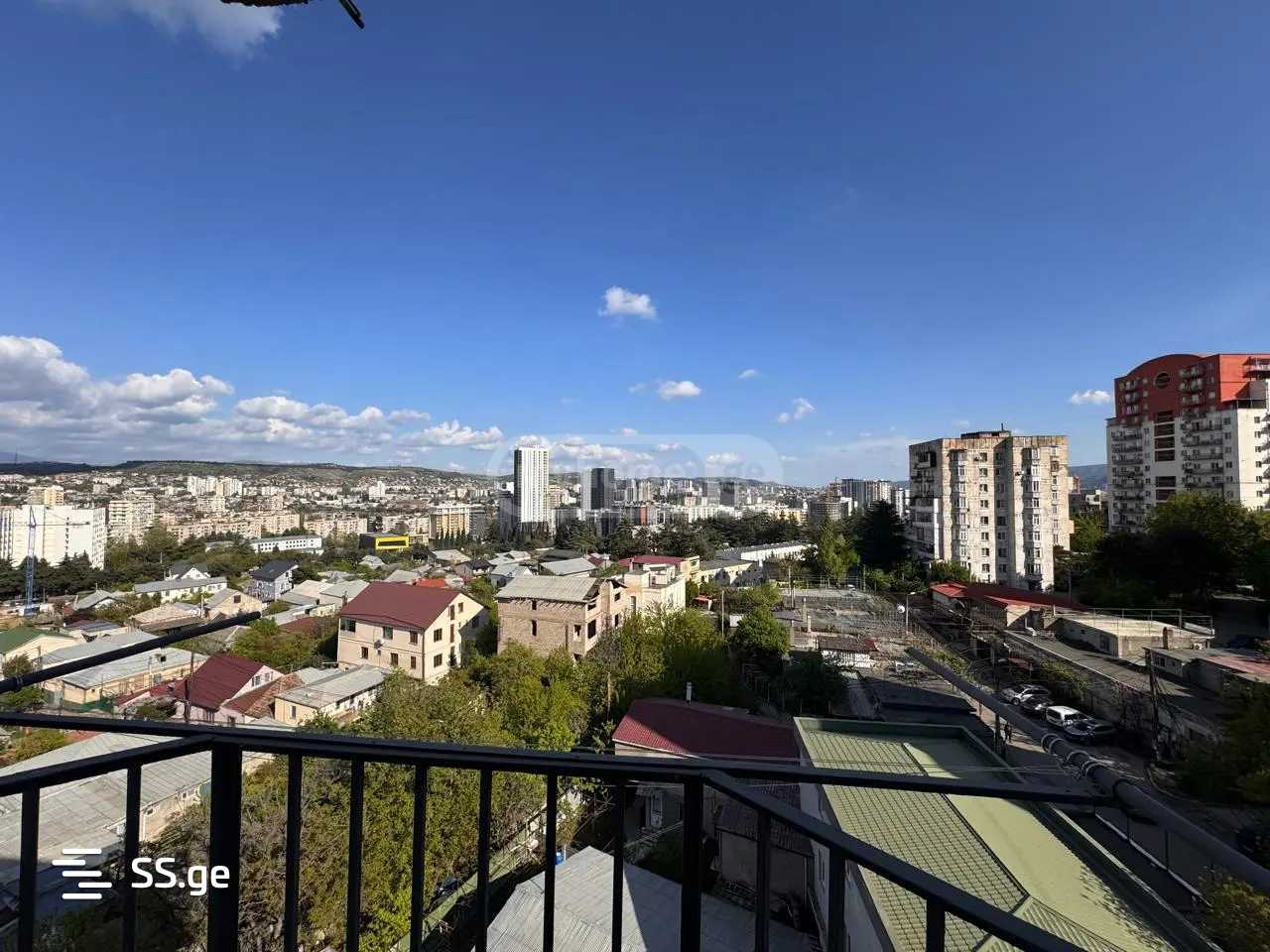 At the beginning of Vashlijvari, in the best location, 2 Valentina Topuridze St.. A newly renovated, uninhabited, two-sided apartment with central heating, air conditioning, new furniture, built-in appliances (including a 14-person dishwasher), with a view of the city, and 2 bright bedrooms. Two months' advance payment.