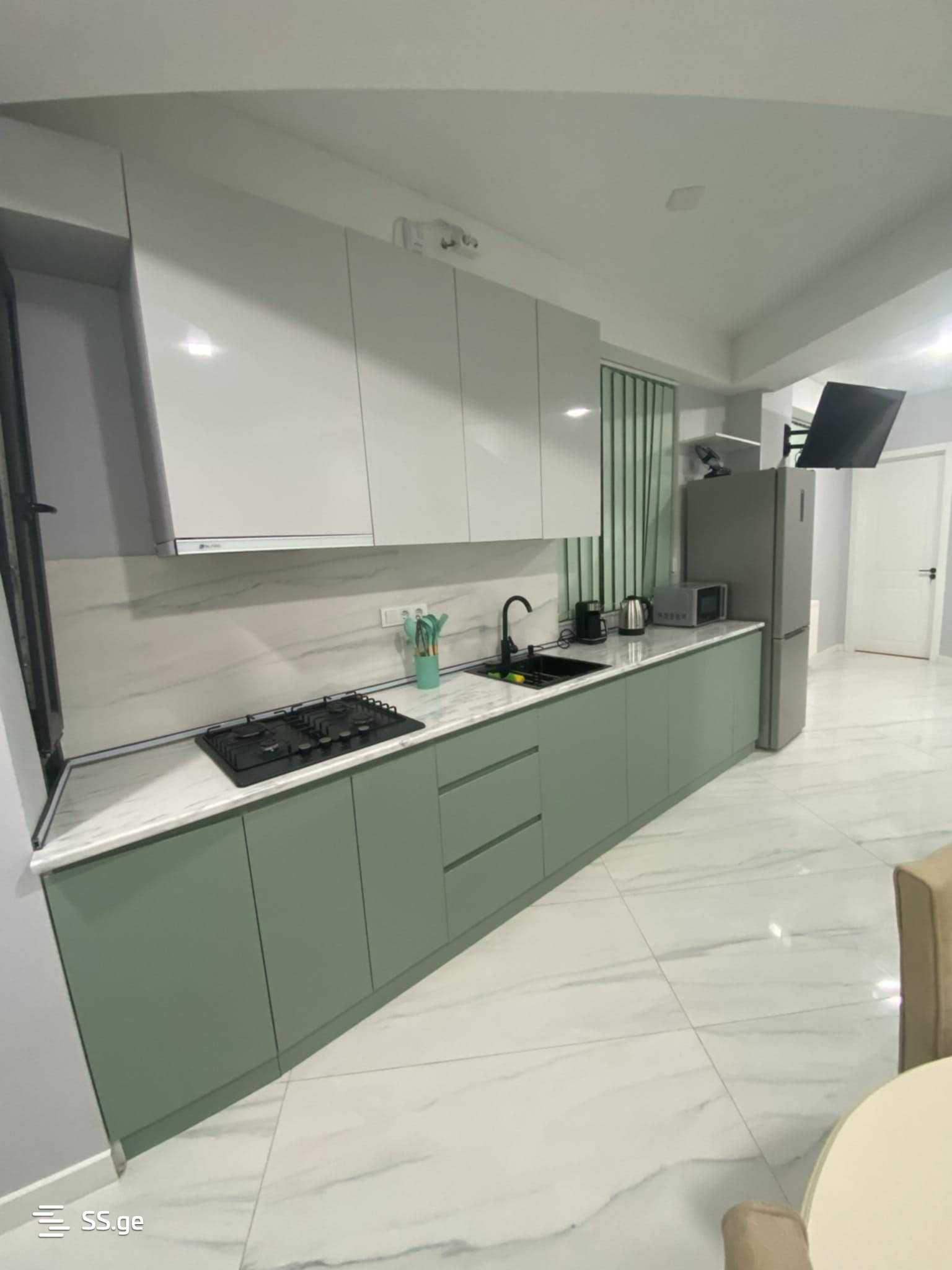 A never-lived-in apartment is for rent in Vazisubani. 3 rooms, 2 bedrooms, furnished with appliances. Price 1200 GEL, payment for 2 months.