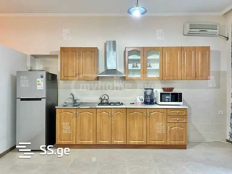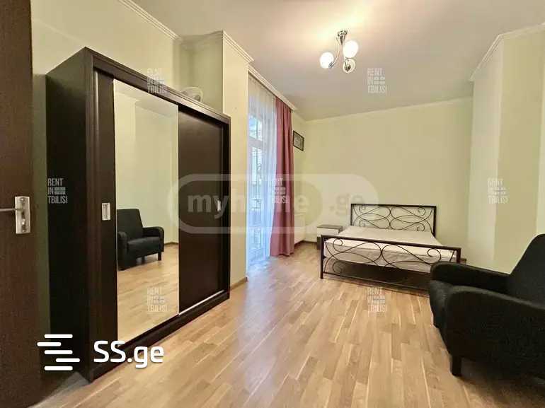 For rent in Vera, on Janashia Street, in a prestigious location, with private underground parking, on the 4th floor of a newly built 8-story building, a beautiful, newly renovated apartment of 120 sq.m, with 2 bathrooms, balcony. The apartment is equipped with all necessary appliances and furniture, 2 televisions. 2 air conditioners are installed.
