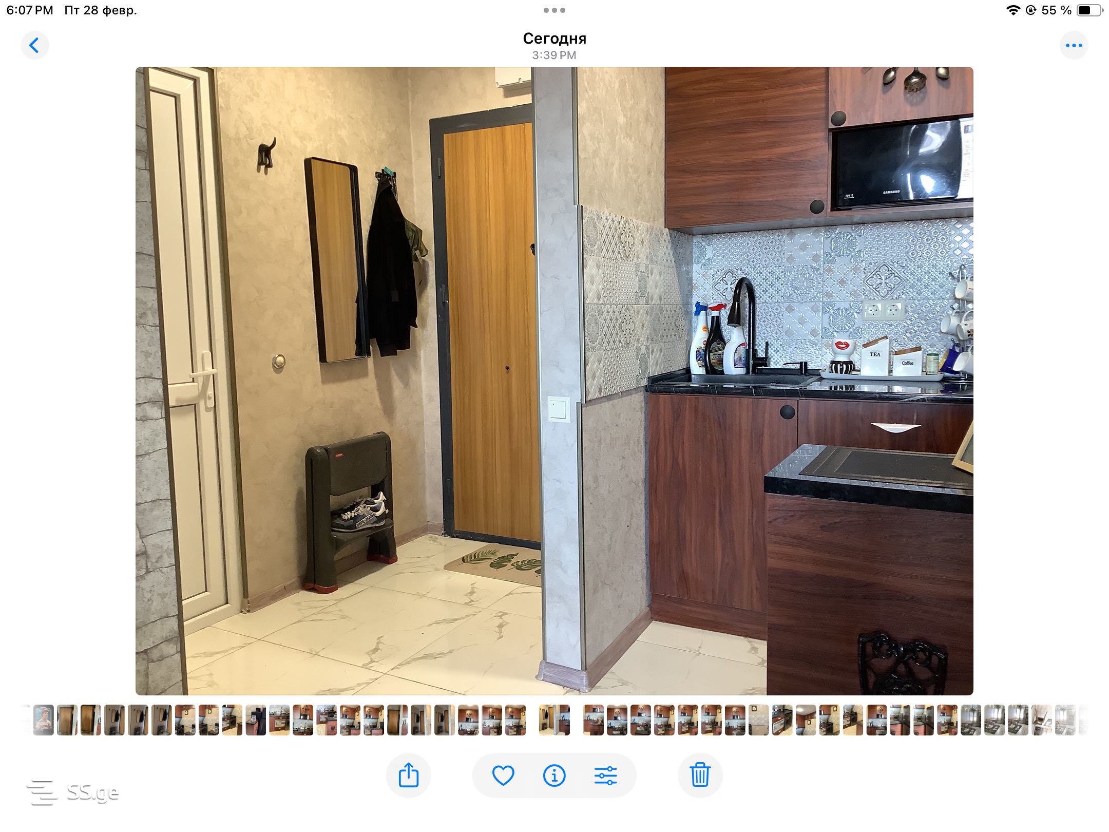 Owner 47 sq.m 3 rooms 10th floor with complete renovation, furnished and equipped, on the corner of Aghmasane and Bagrationi, behind the Beeline office, green zone building with a pedestrian entrance, view of Aghmasane from the car from Baudi or Tabidze, 500 m from the sea.