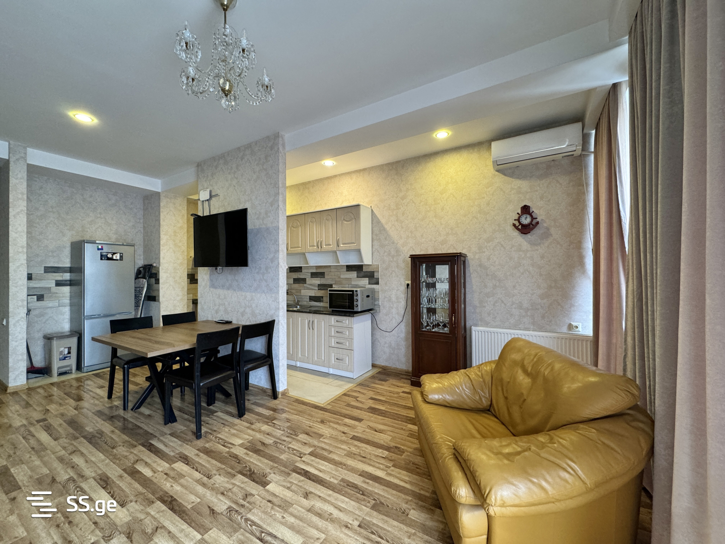 The apartment is located in Avlabari, on Khakhanashvili Street. The apartment is renovated, with two balconies. The house in which the apartment is located has a backyard.