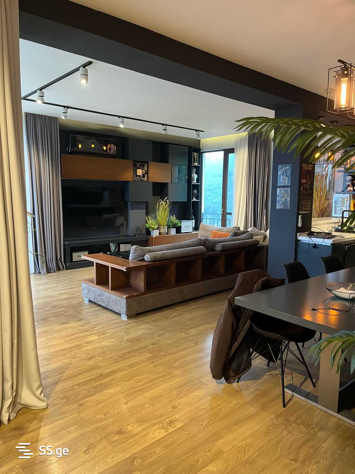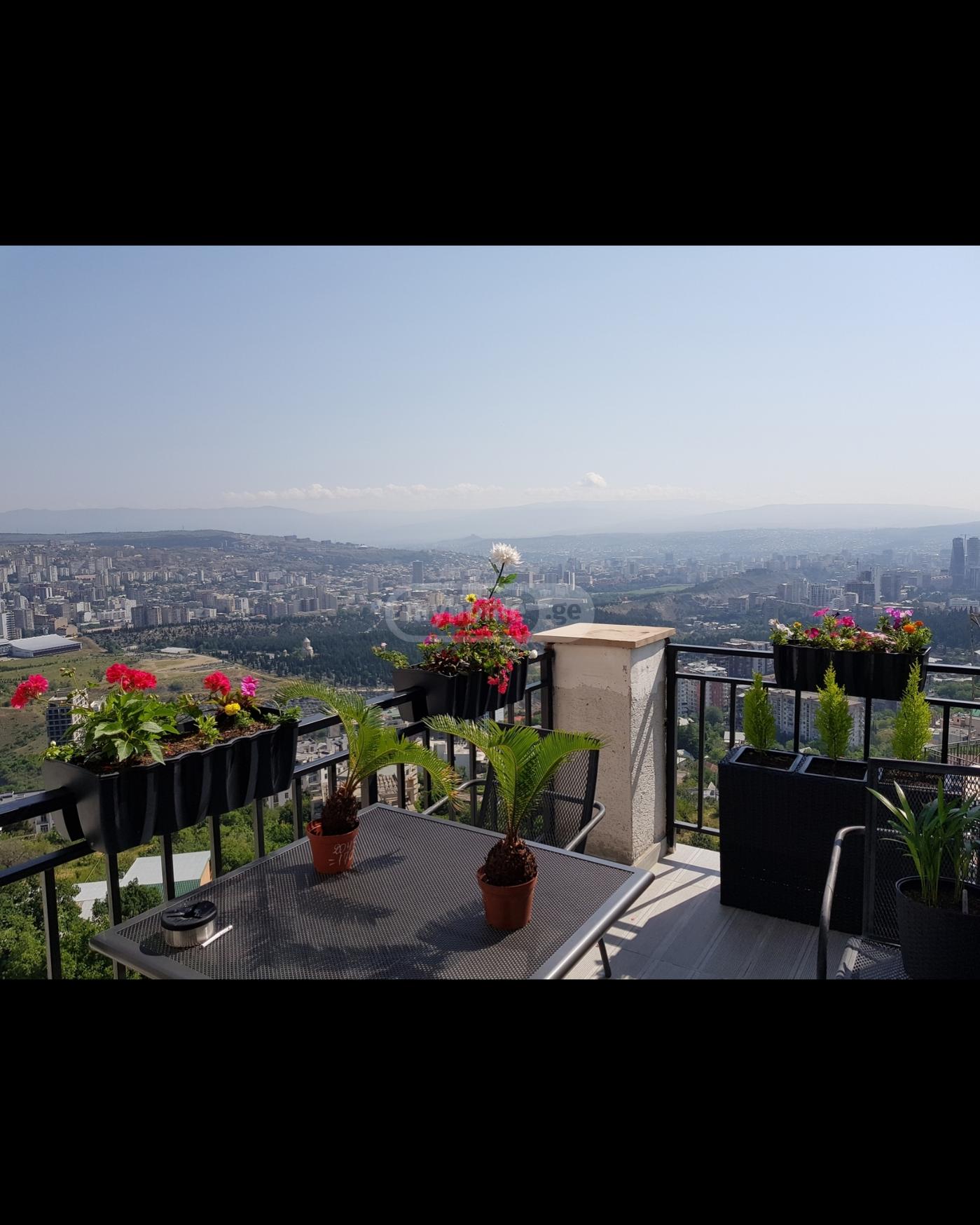 For sale in Vake, in the most prestigious and ecologically clean area, a newly built penthouse on the last fifth and sixth floor of the building. Fully renovated 115.20 sq.m apartment on the fifth floor using the highest quality materials: plumbing bathroom, sinks, mixers, toilets from 'Villeroy & Boch'. Kitchen is equipped with top-quality appliances from BOSCH. The bedroom is fully furnished with all necessary storage and has a separate bathroom with a view of the city and a balcony. Heating and cooling systems. The air conditioner can be controlled from anywhere in the world. There is a fire and motion detection system for security. On the sixth floor, there is a terrace of 107.06 sq.m with a beautiful view of the whole city and the forest area (the terrace needs to be finished and furnished according to your taste). The apartment was built and renovated in 2018. The total area is 222 sq.m. The price is negotiable.