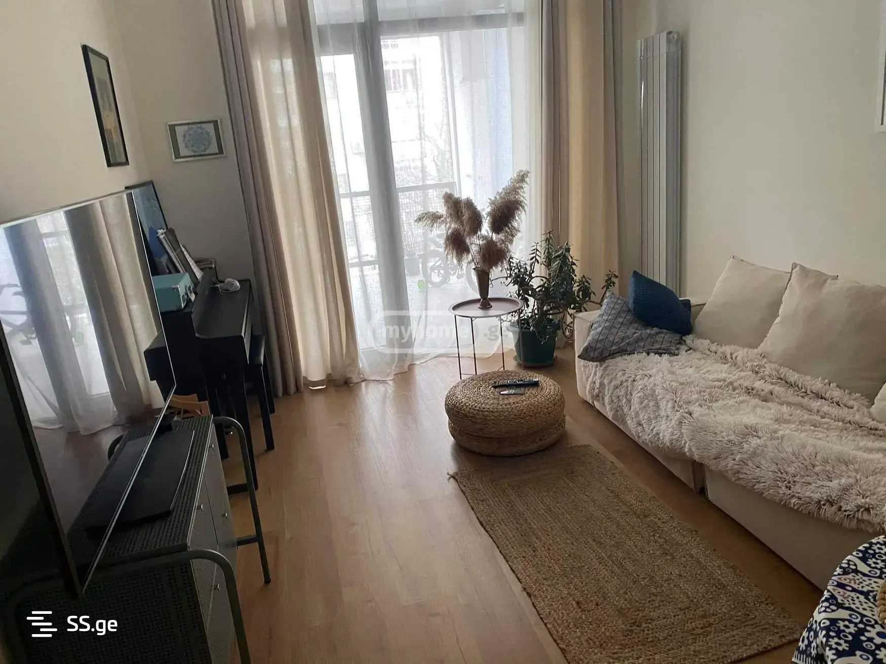 A three-room apartment for sale in Bagebi, with two bedrooms and a studio-type living room, at Tabliashvili number 8, in the newly built building "Flexi Bagebi". third floor. Furniture and appliances remain in the apartment. All important facilities, 1 minute walk (school, kindergarten, supermarkets).