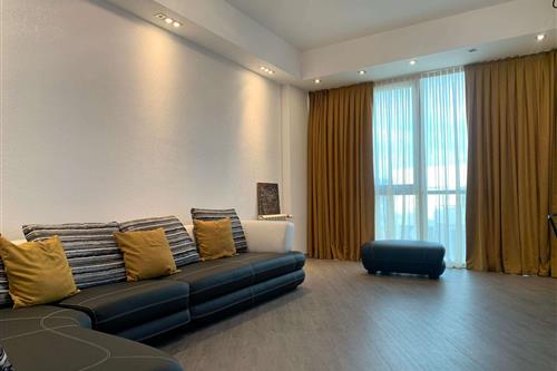 For sale is a renovated 79 square meter apartment on the 9th floor of a modern building at the beginning of Bagebi. The apartment is airy and sunny with a large living room leading to the kitchen and balcony. It has 2 bedrooms (1 large bedroom and a small bedroom intended for one person or a child), and the bathroom and toilet are isolated from each other. The apartment has 2 balconies with views of Turtle Lake and the road to Tsikhisdziri. The apartment is sold with existing furniture and appliances (washing machine, refrigerator, air conditioning) and furniture. The house has its own playgrounds and a park.