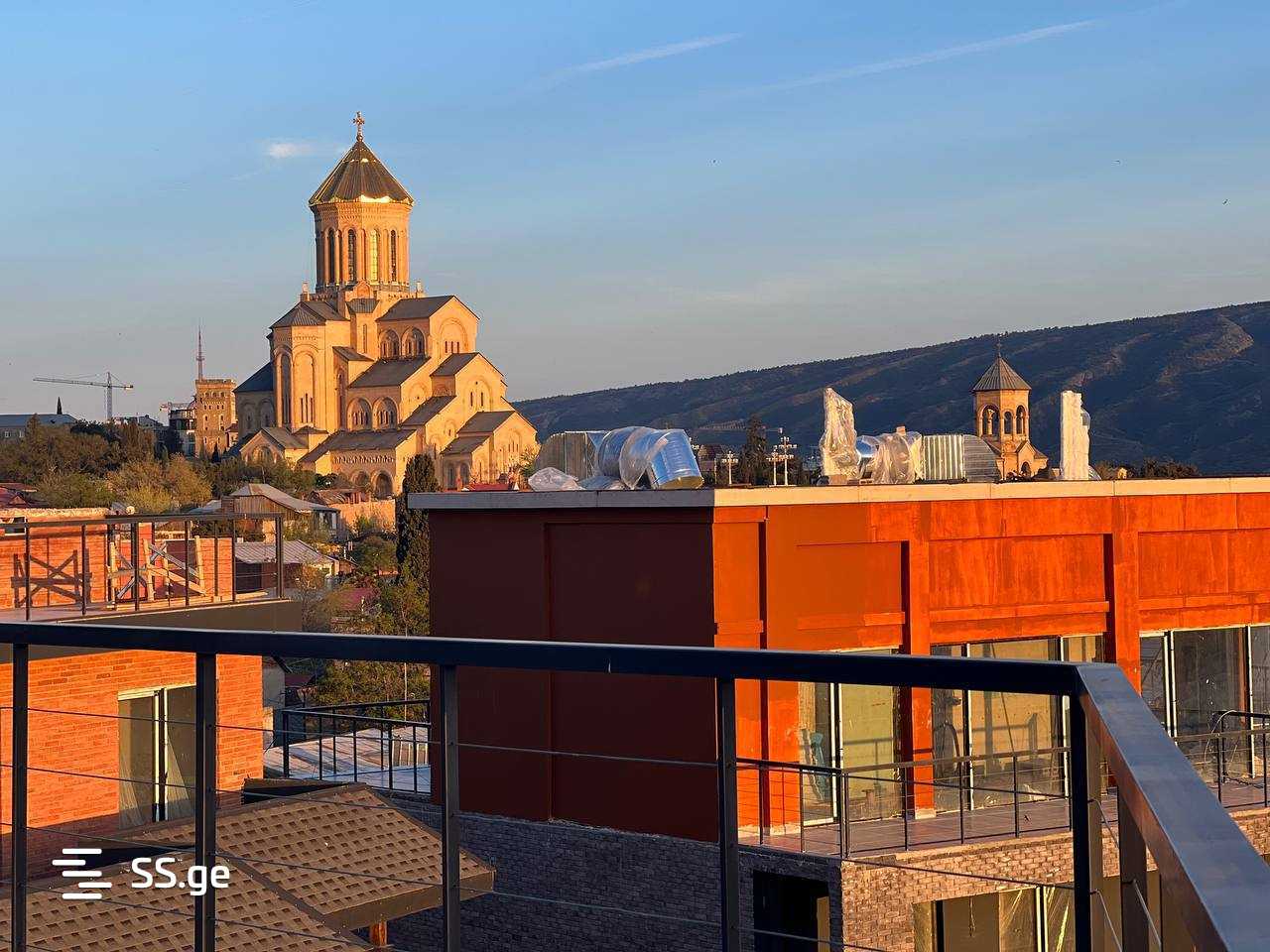 The penthouse includes: panoramic views of Tbilisi, swimming pool, terrace with an area of 195.3 sq.m., gym, spa, cafes and restaurants, 24-hour security, recreation areas.
