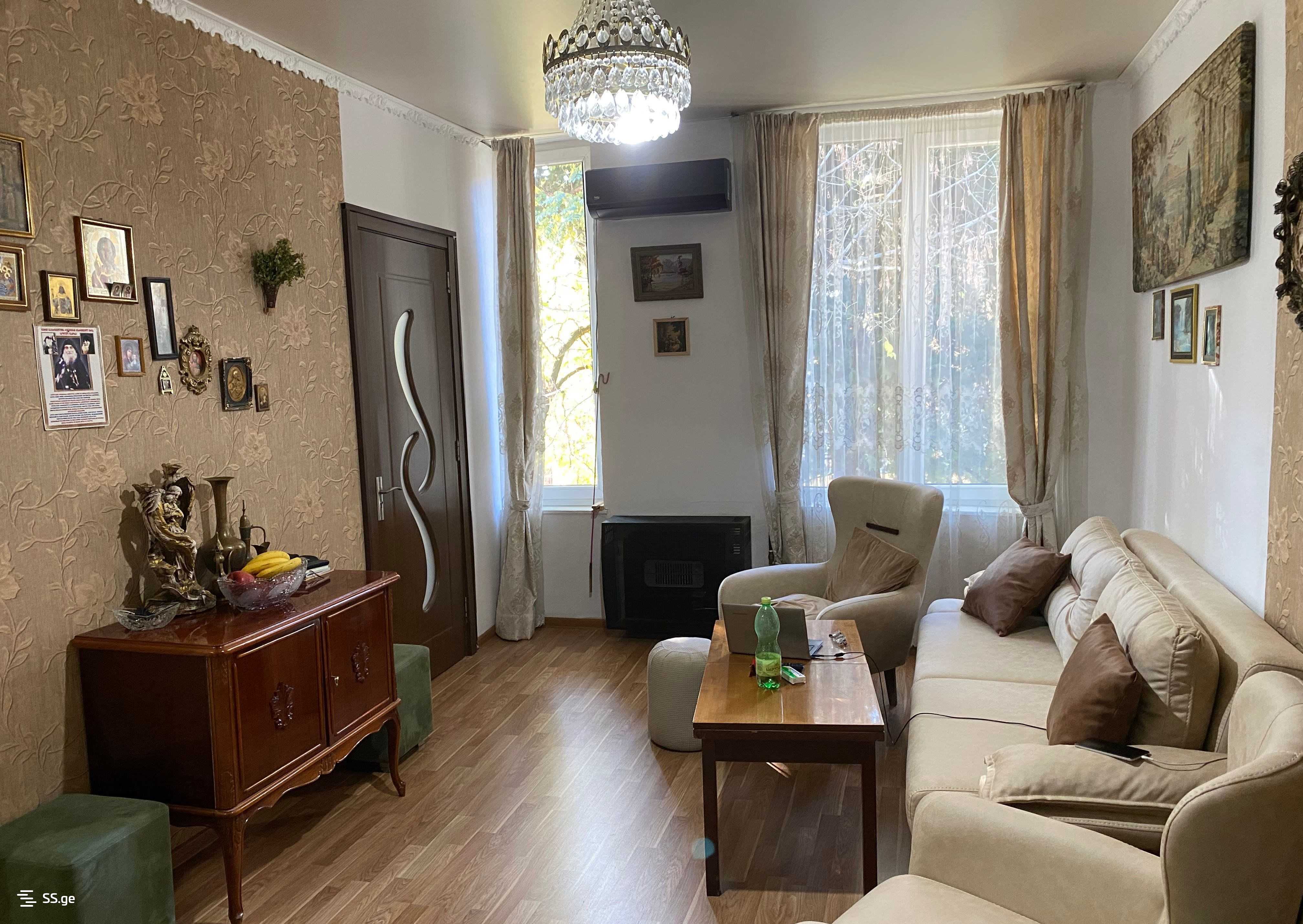 A duplex apartment is for sale in Chugureti, 2 minutes' walk from Aghmashenebeli Avenue. The apartment has 2 bedrooms and 2 bathrooms. A new entertainment space has been built near the building and has a fenced yard. Contact me for details