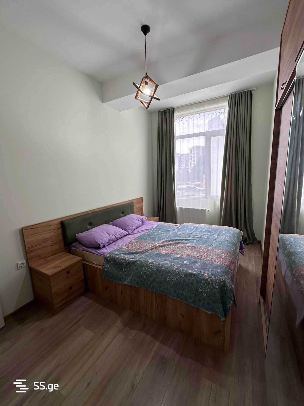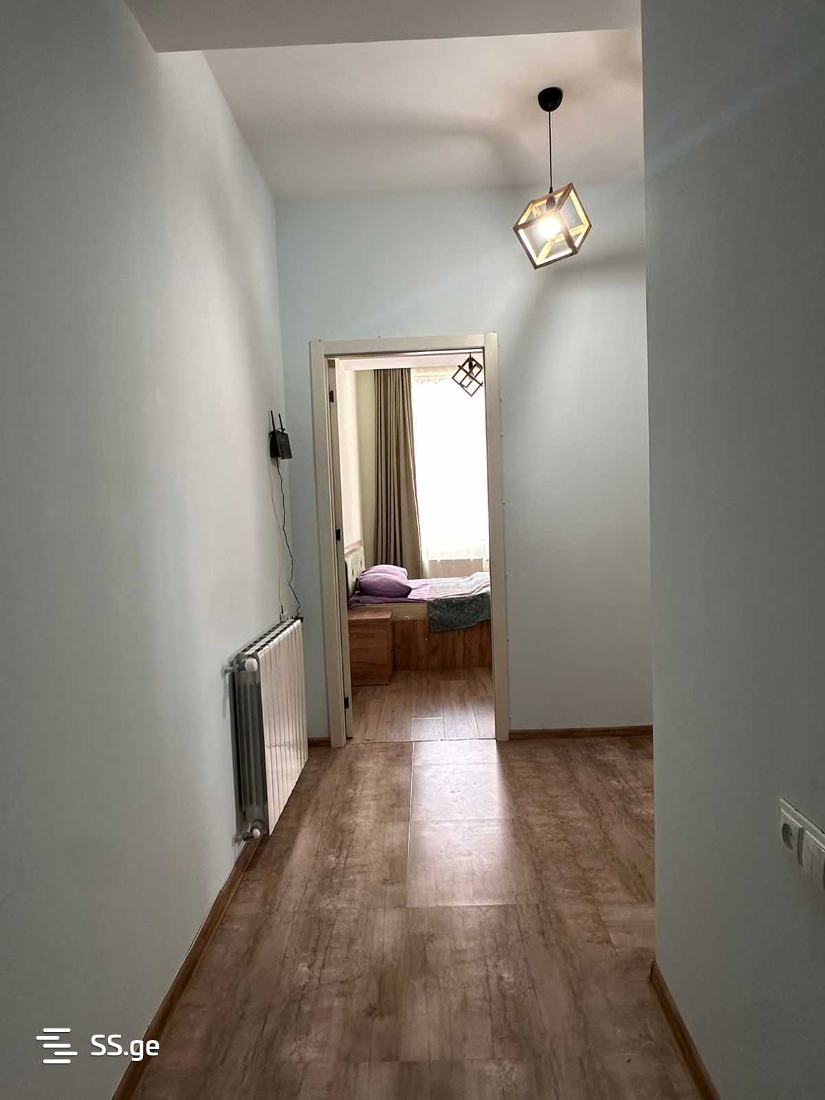 Apartment for sale in Didgomi, at 11 Archil Mepe Street. Completed building, well-maintained and secure. The apartment is ready to live in. The apartment has: two bedrooms, 1 bathroom, a studio-style kitchen, and a living area. Balcony - 11 sq.m. Central heating (best quality Italian boiler). The apartment is quite cool in summer, warm and cozy in winter. Each bedroom has built-in wardrobes. The complete set of furniture shown in the photos remains in the house. (Except for the television - negotiation possible). At the bottom of the building and directly opposite, there are all household facilities: Pharmadepo, Clean House, Carrefour, Vet Pharmacy, 24/7 market 'Balu', a convenience store, and a hardware store. The bus stop is 50 meters from the building. Parking space is available both in front and behind the building, and there is also a small area for children (swing, slide, etc.) behind the building.