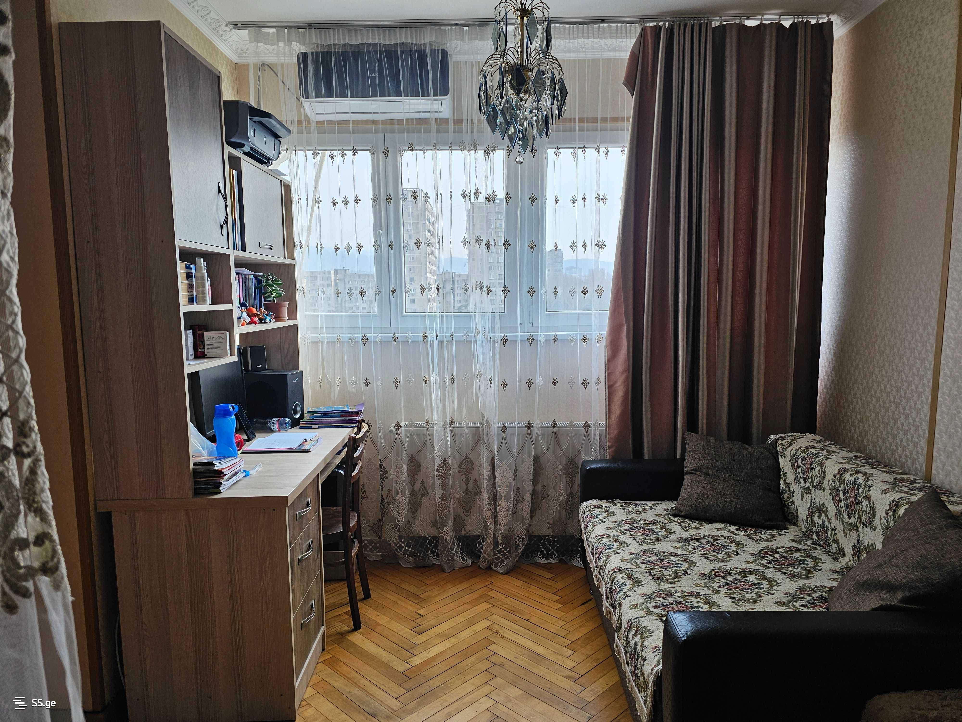 Urgently for sale is a bright corner apartment with 3 rooms in Gldani, 2nd microdistrict, close to the metro. Kavlashvili project. It has a small children's room on the fourth floor. 7/16. With central heating. With metal-plastic doors and windows from the Albatros company. With an iron door. Partially renovated. Partial furniture remains. It has a large balcony. Along with the apartment, a well-maintained storage room, basement, and garage are also for sale, which are registered in the public registry, as well as a plot of land of about 200 sq.m next to the building, where there is a pathway and fruit trees, with water supply installed. The total price is $155,000. It is possible to sell separately. The apartment and storage together, while the basement, garage, and land plot together. If interested, please contact us: 577 55-34-72 or 577 25-08-30.