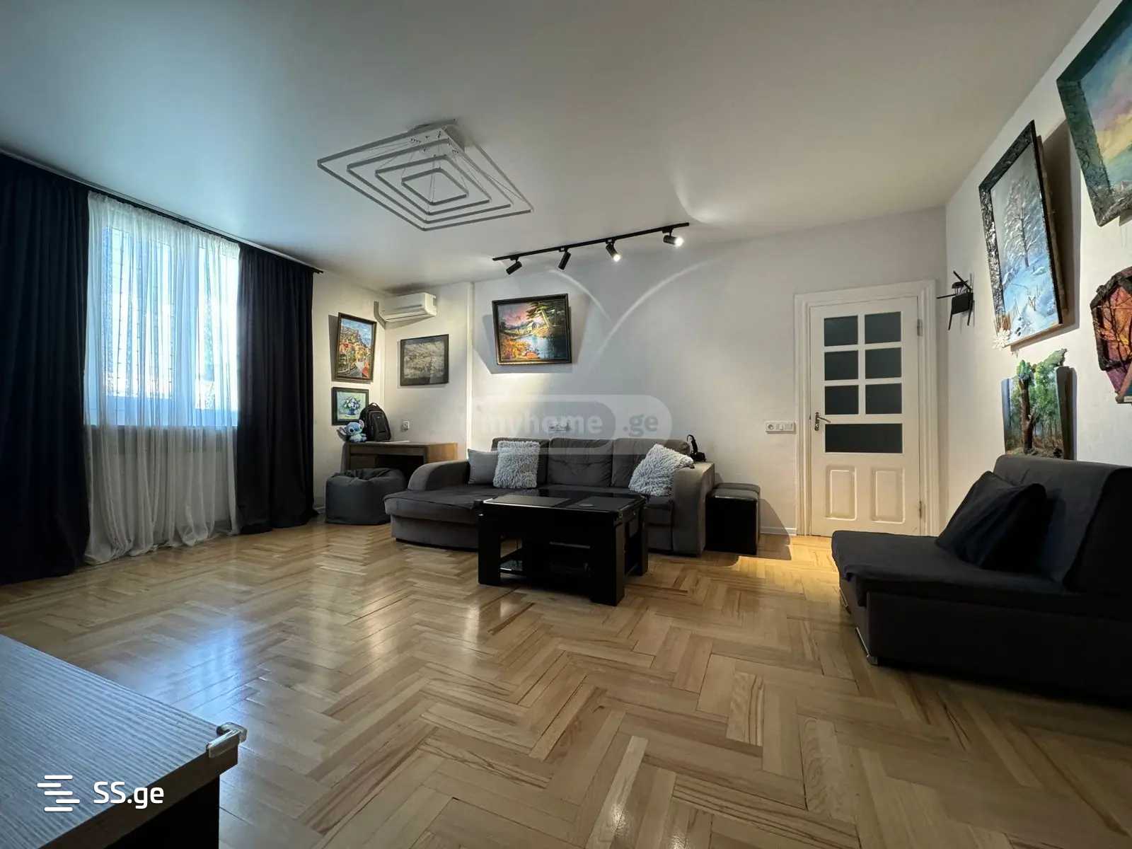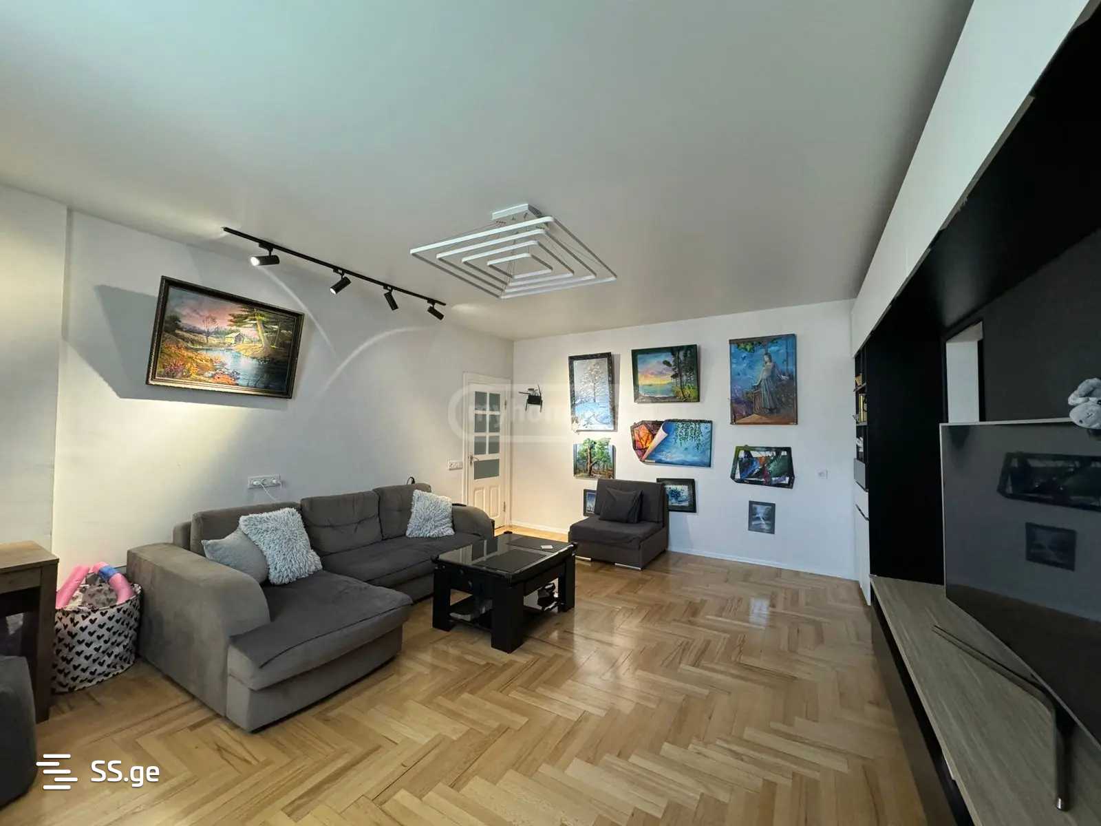 A 3-room (with 2 bedrooms) renovated apartment is for sale at 7 Glani Street. It has an isolated kitchen. The apartment includes furniture, curtains, cabinets, a washing machine, a gas stove, and a refrigerator. Central heating has been newly installed. Two air conditioners have been installed. There is a stop near the building, a minibus and a bus are available. It takes 10 minutes to get from the metro. The building has a yard in front and behind, there is no problem with parking a car.