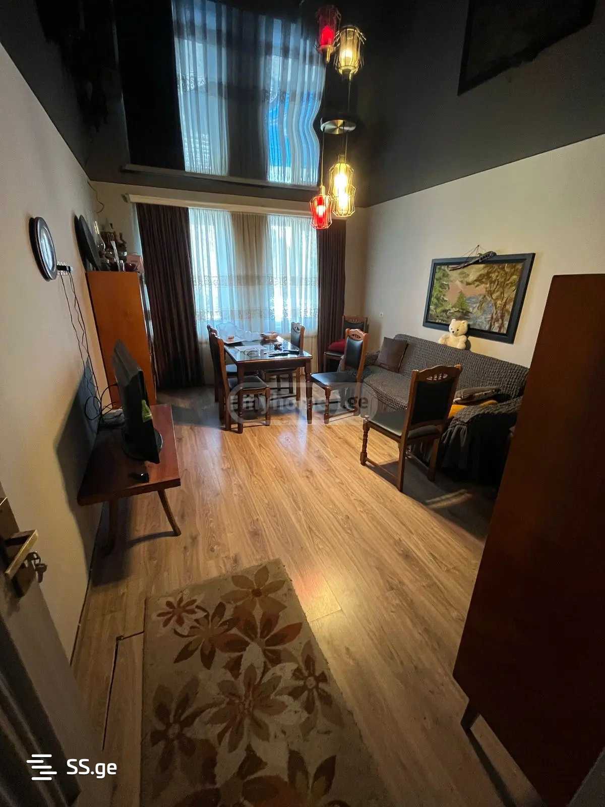 An apartment is for rent in Metrosheni, on the first floor of a two-story building. The apartment is cozy and bright, everything you see in the photos remains. It has a basement of 30 sq.m.