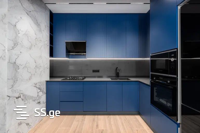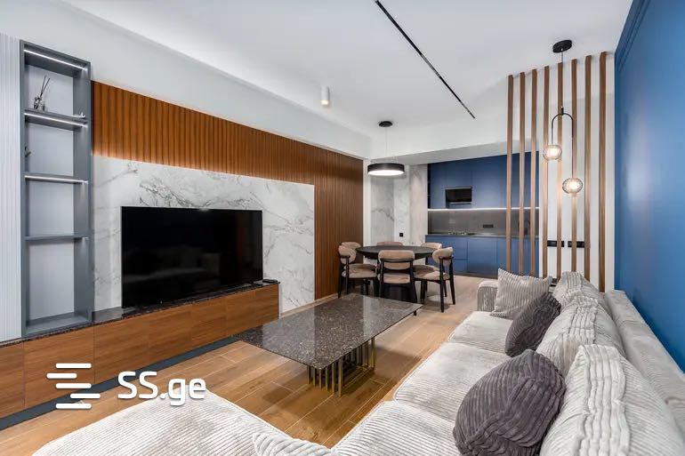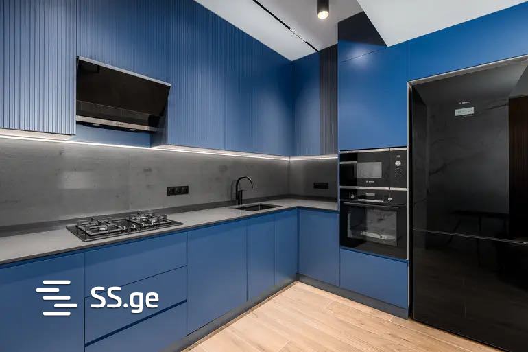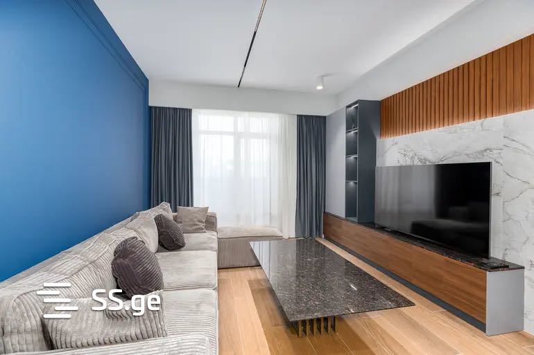 For sale is a 3-room uninhabited apartment on Bochormis Street, on the 13th floor of a newly built building. The total area is 97 m2 and includes a studio-type living room and kitchen, 2 bedrooms, a bathroom, and a balcony. The apartment's renovation, furniture, and appliances are of high quality. Everything remains except for the television.