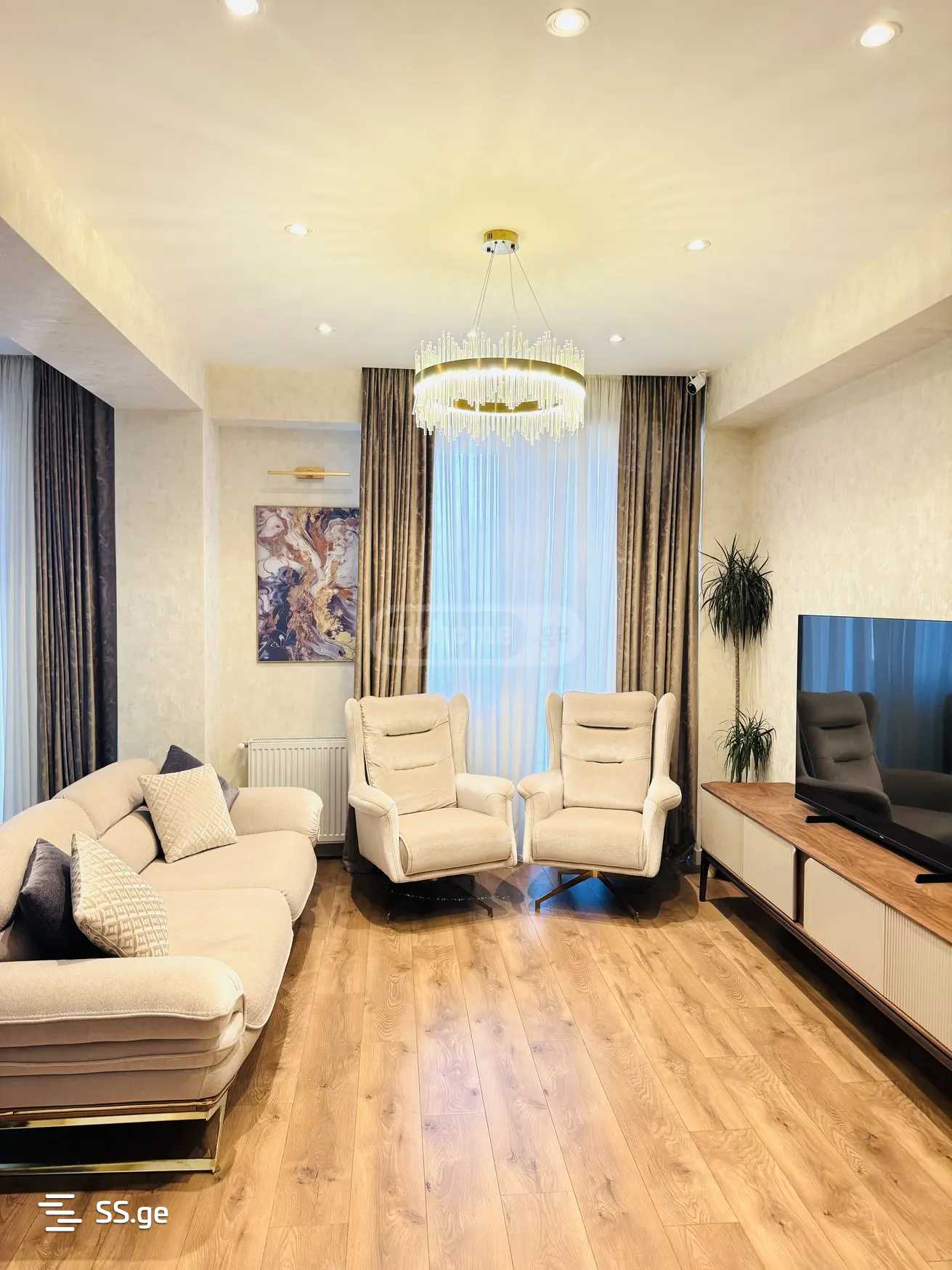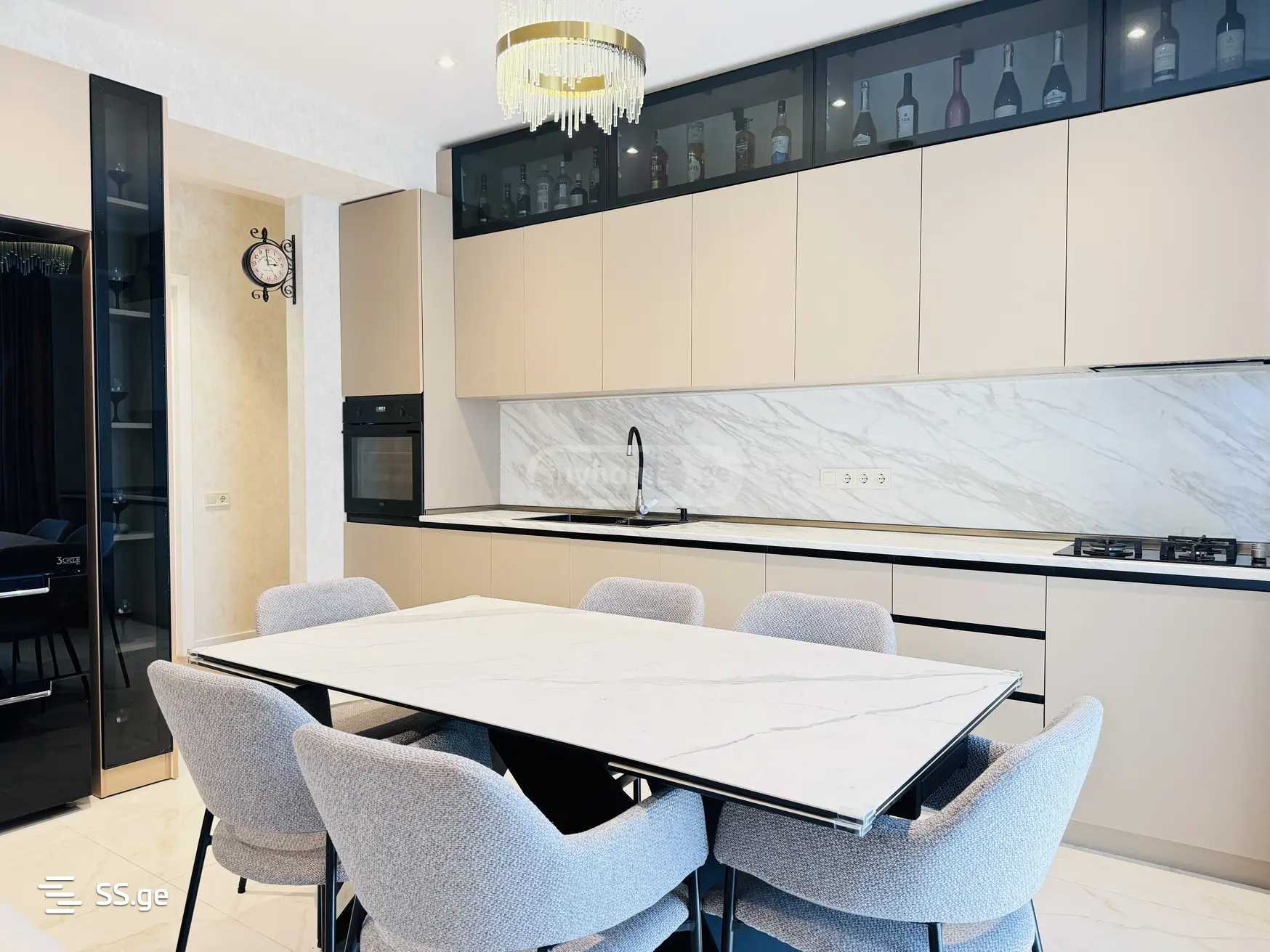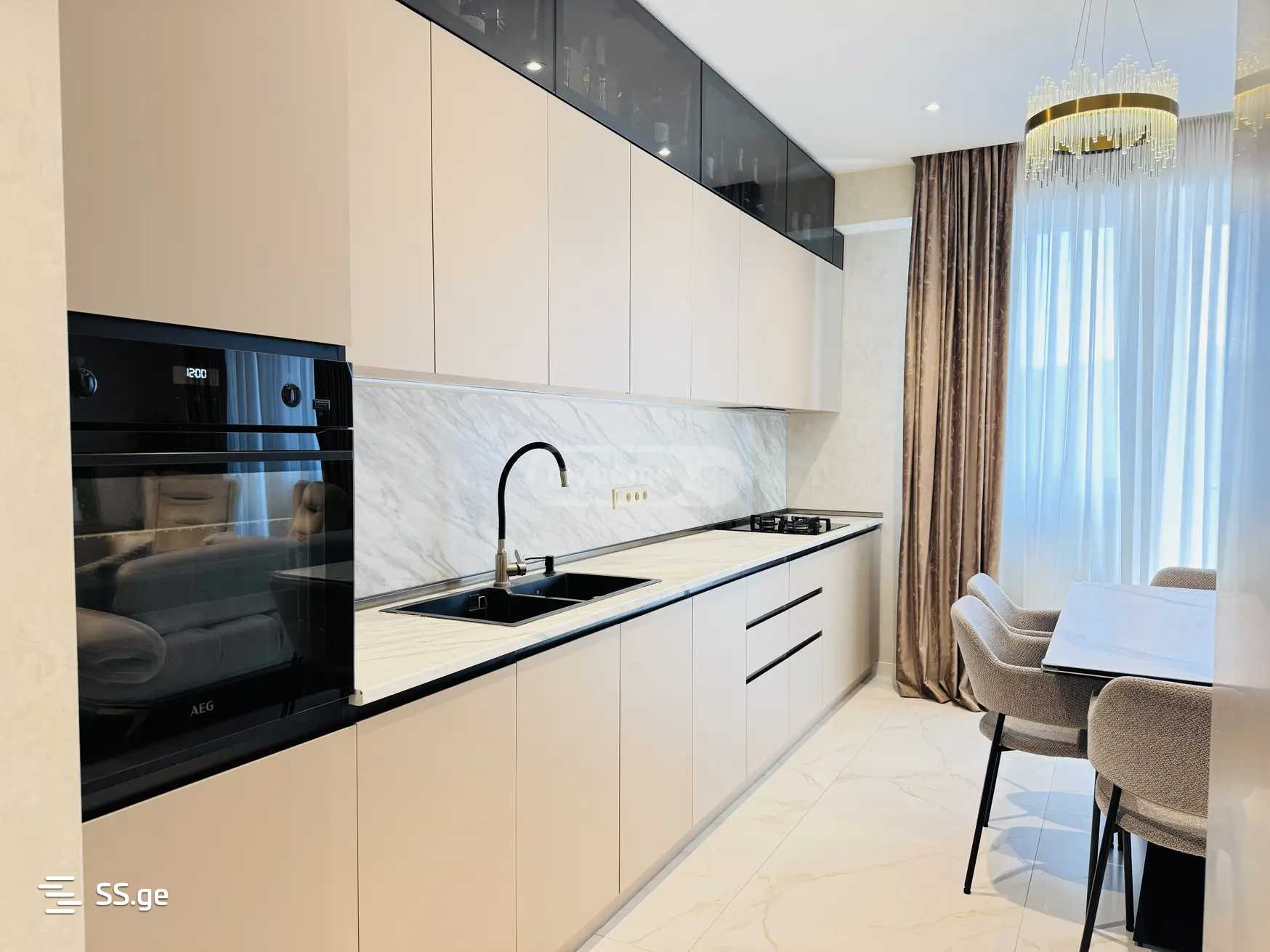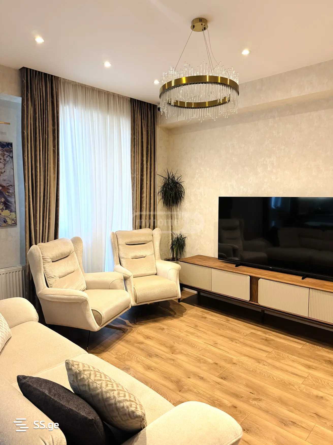 For rent is a bright and distinctive corner apartment located directly above the metro Ghrmaghele. Initially designed as a 4-room layout, it has been transformed into a functional 3-room apartment. The apartment is renovated with high-quality materials and is fully equipped: