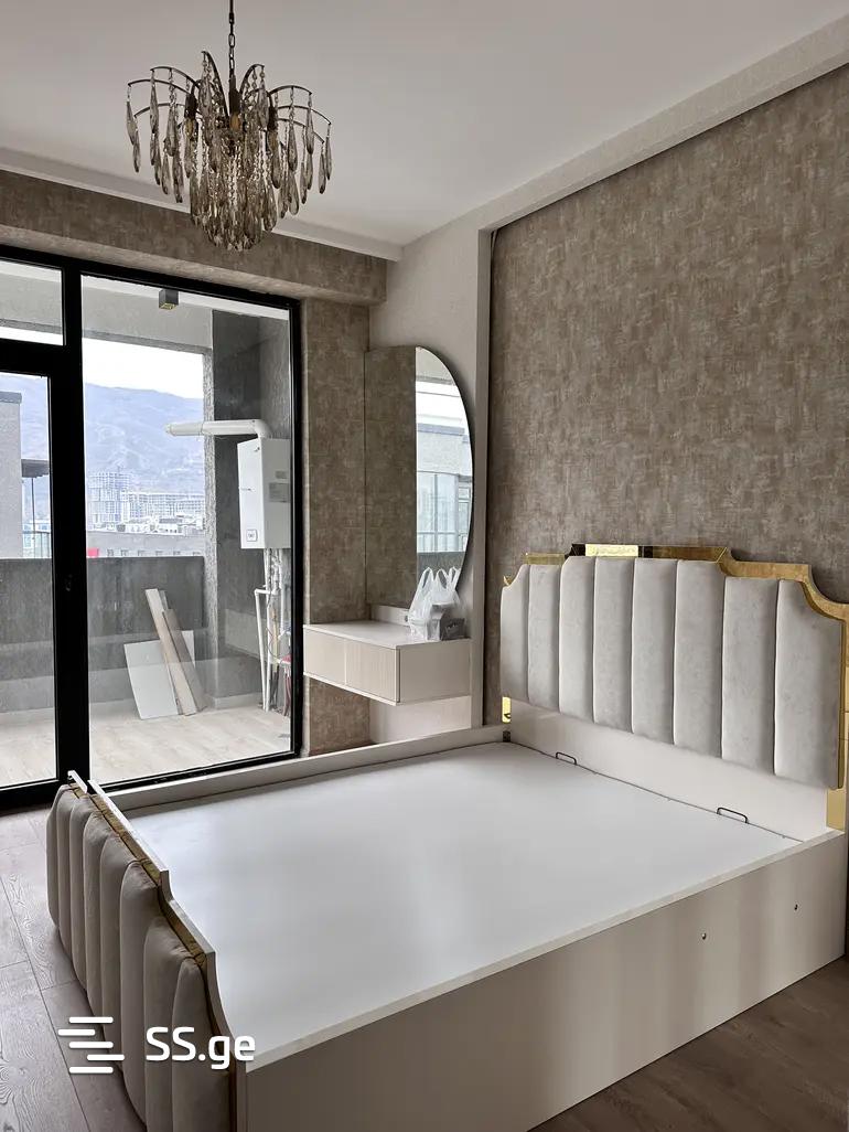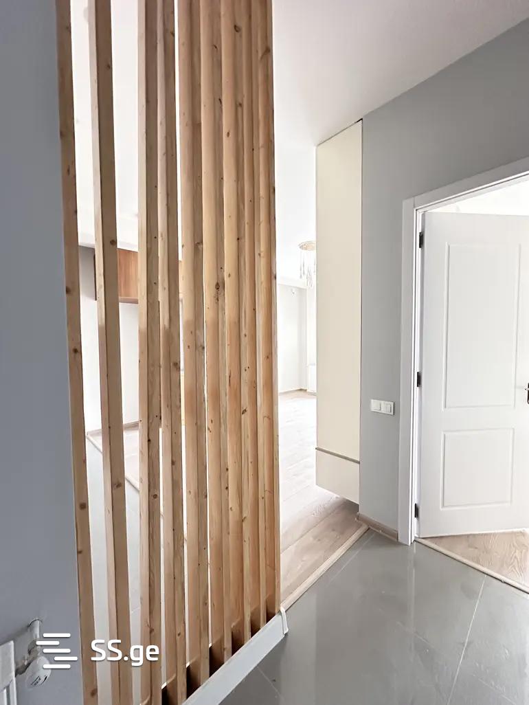 A renovated apartment in a newly built residential building is for sale, partially furnished.