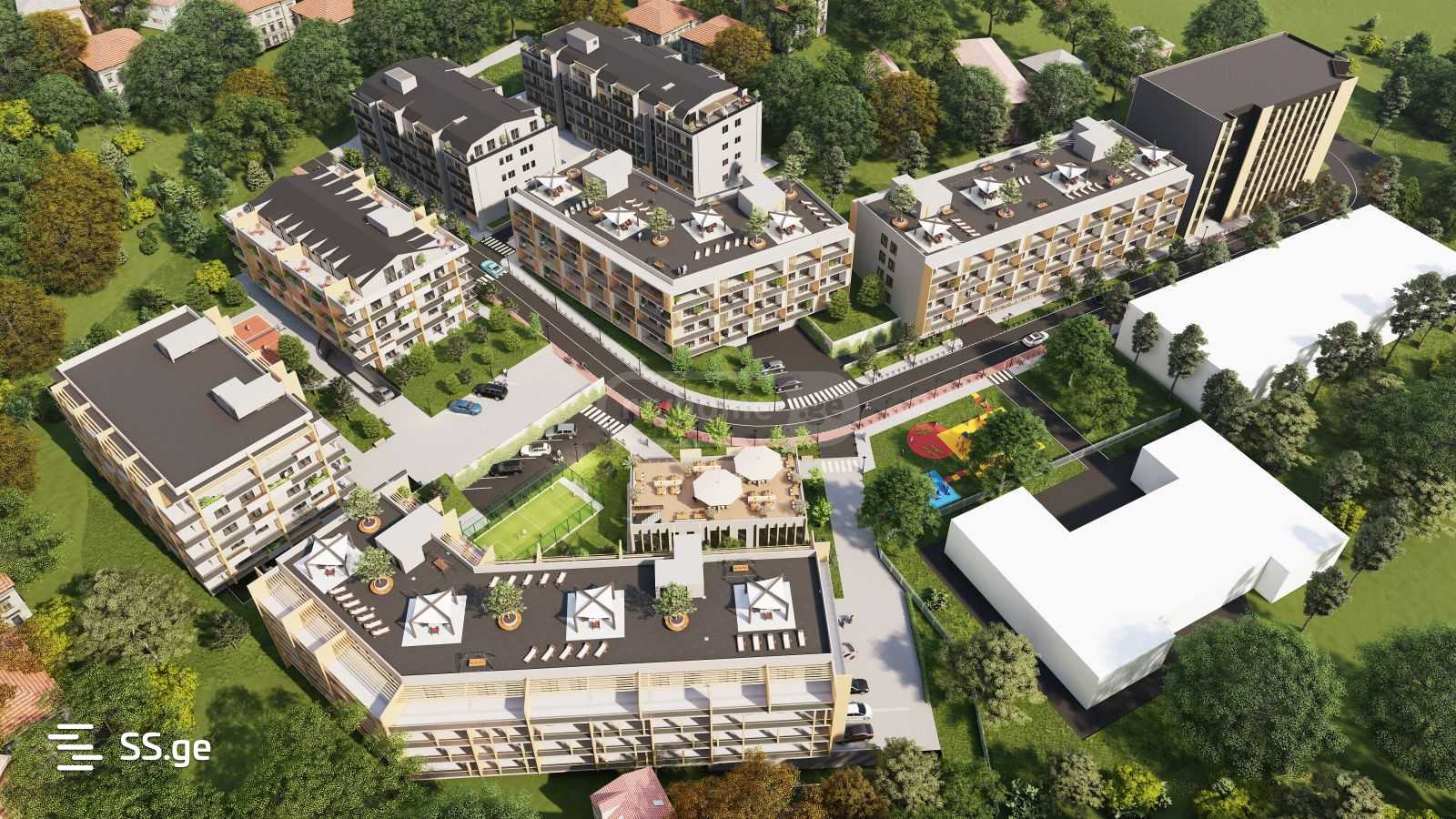 8 residential buildings. There is a kindergarten in the courtyard. Marjanishvili and Station Square metro stations are 15 minutes walk from the building. Squares and playgrounds will be arranged in the courtyard. There will be a supermarket and a pharmacy. I am the owner