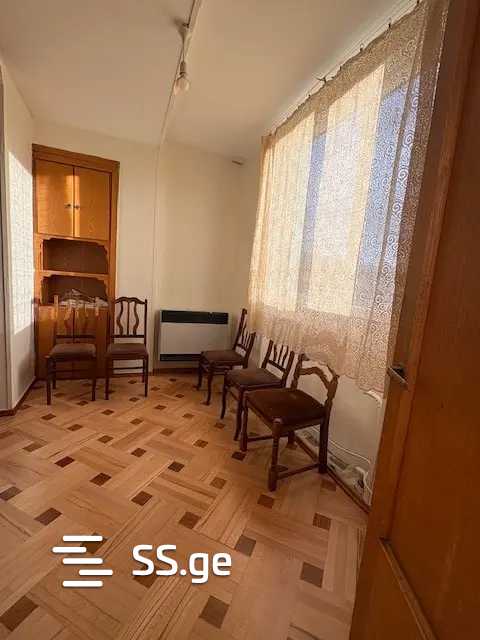 For sale is a two-room apartment modified into three, designed by Kevlashvili, 72 m2, with a new cosmetic renovation, new wooden (mahogany) parquet throughout the apartment, built-in walnut cabinets, an entrance iron door, a balcony, with an extraordinary view of the city. Garage and furniture are possible (for an additional fee).
