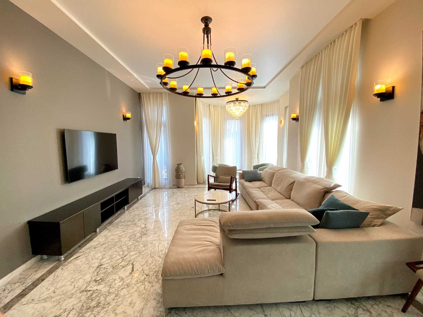 For sale spacious apartment 110m2 with a large living room, two bedrooms, separate kitchen. Repair made of high-quality materials. German appliances, Italian marble. Spacious and bright apartment. Triple glazing. 3 balconies. 3 bathrooms. Separate kitchen with built-in German appliances. Storage room. Heated floor. The house is built according to an exclusive design project. The apartment is located on the 3rd of 5 floors. There are 3 apartments on each floor of the house. There is an elevator. The house is located in the heart of the old town, on the main square. Developed infrastructure of the area: cafes, restaurants, shops, educational institutions, squares, embankment and much more. Address: Batumi, Nodar Dumbadze str., 7