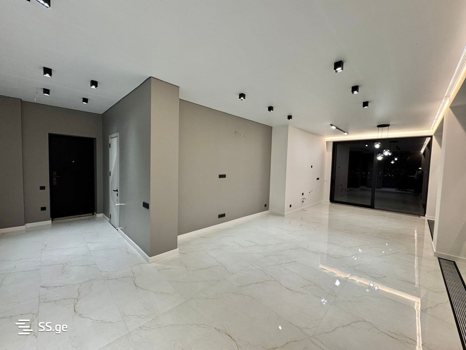 A three-room villa is for sale on the high first floor of the Residence in Jvari. With the best views and renovation.