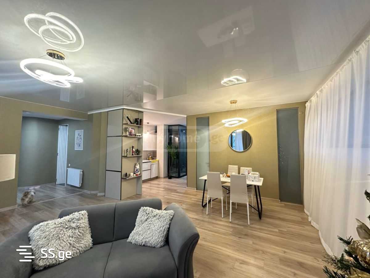 An apartment for immediate sale in Fanaskertel, an apartment of 120 sq.m. with full inventory. The apartment has been renovated for a year, with a modern interior, bright, quiet, no noise from cars. The apartment is studio type, 3 rooms, 120 sq.m. One bedroom is the master bedroom with its own walk-in closet. The second room is currently set up as a work space, however, it is possible to convert it into a bedroom, with its own wardrobe space. Appliances and furniture remain in the apartment. The living room is stained glass. The house has its own yard in front of it, where there is a rest area and a small garden. From the yard there are views of Kus Lake and the slopes of Mtatsminda.
