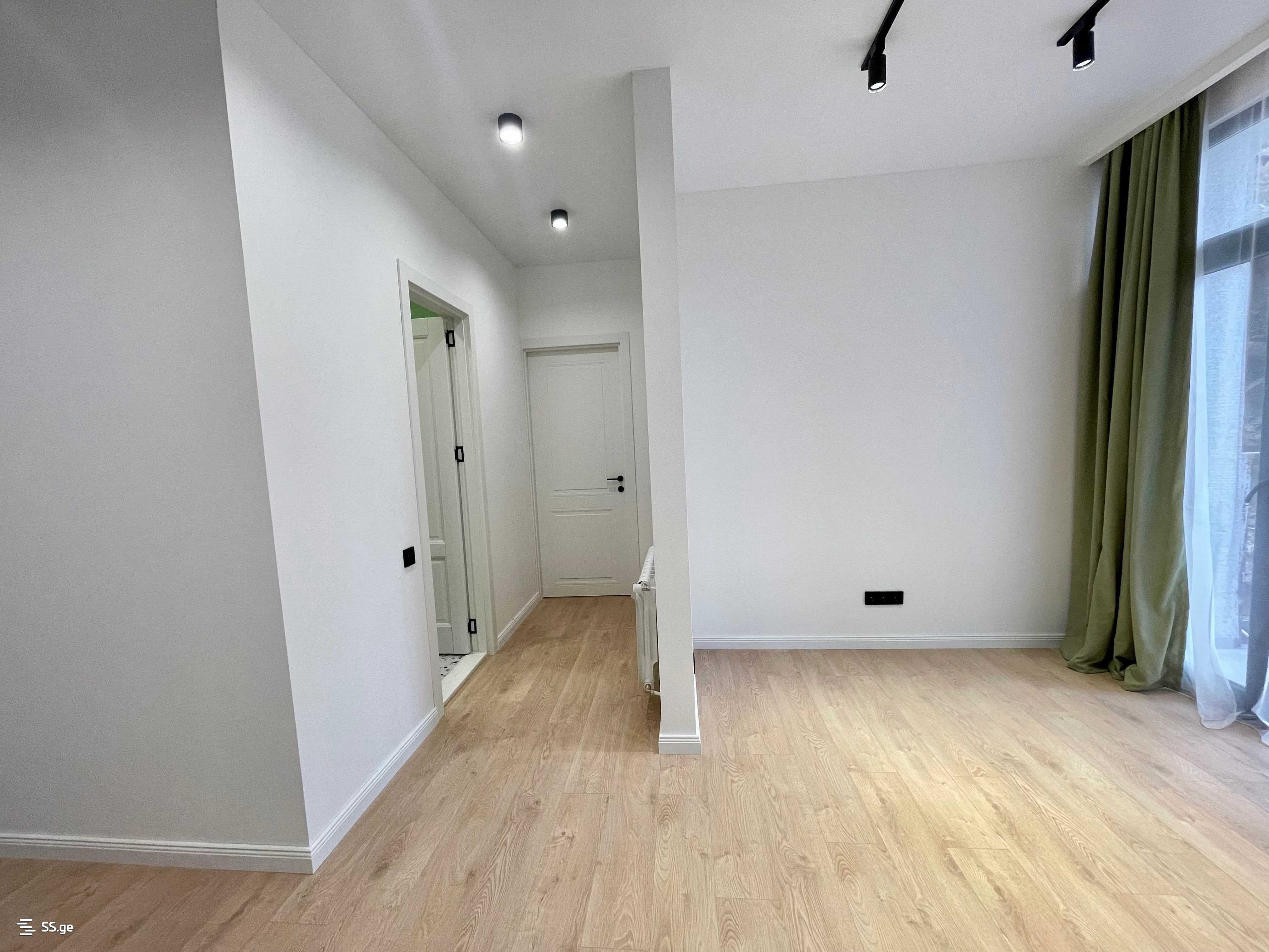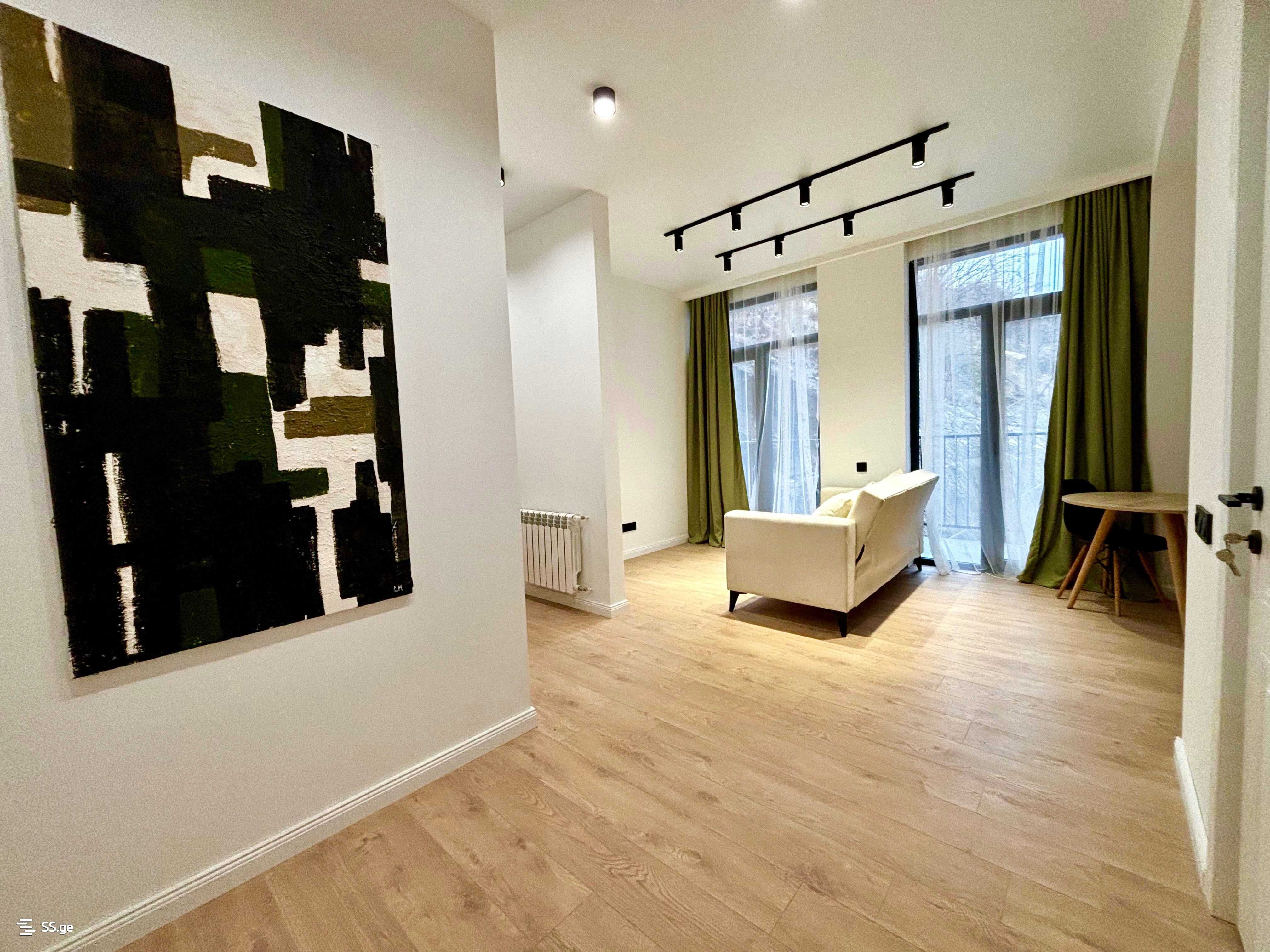 For sale: a newly renovated 3-room apartment in a newly built building, 5 minutes away from Vazha-Pshavela metro station on Besarion Jgenti street, 10 minutes to City Mall. High-quality, safe materials have been used. It is fully equipped with appliances and furniture. There are two bedrooms (both with natural light), as well as a storage room. It is ideal for both living and renting. The building is already fully inhabited. It has two lifts, freight and passenger.
