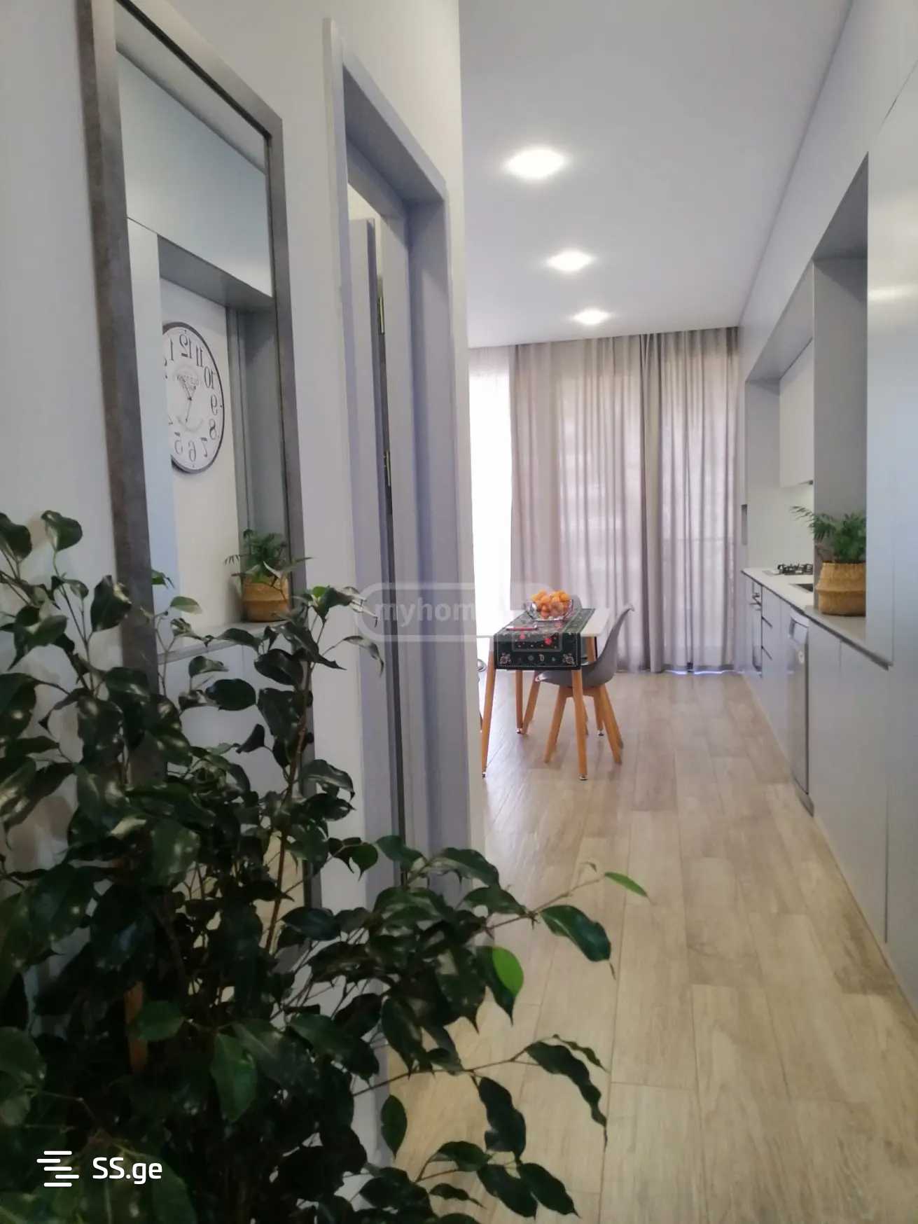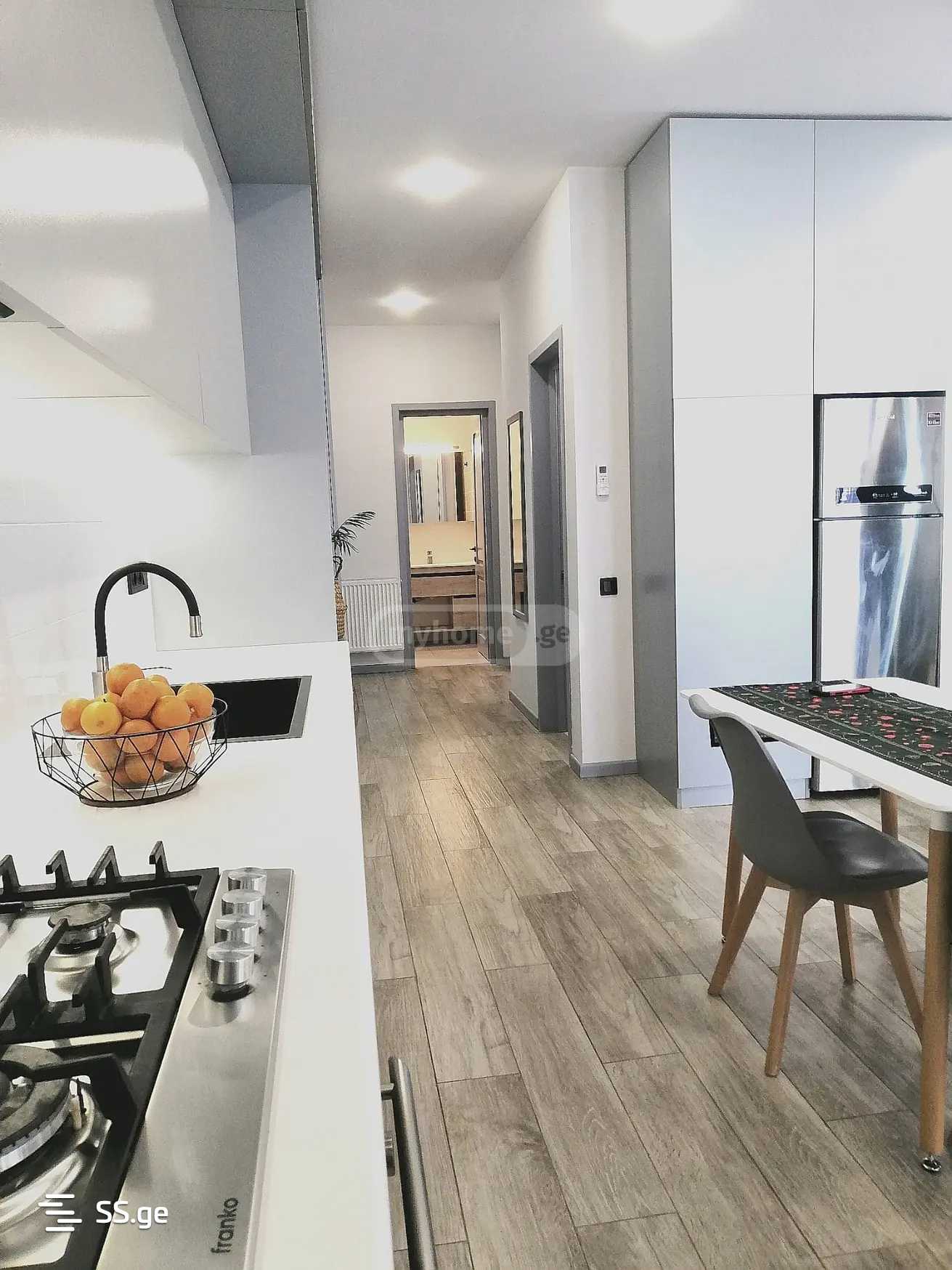 A newly renovated apartment in "Saburtalo Palace", a landmark building next to the "State University" metro station. Extremely well-developed infrastructure with shops, buses, restaurants, a 24/7 gym nearby, a metro station and a fresco grocery store beneath the building. The building has a lobby, 24/7 security, cameras everywhere, underground parking, a sports field, and a recreational area.