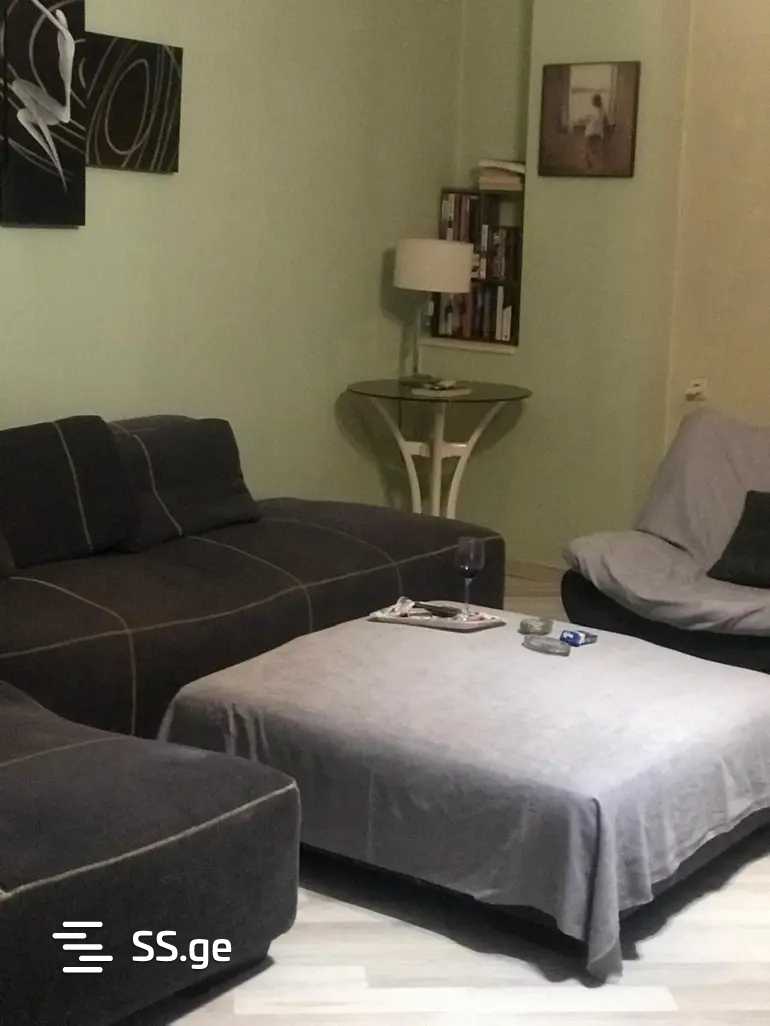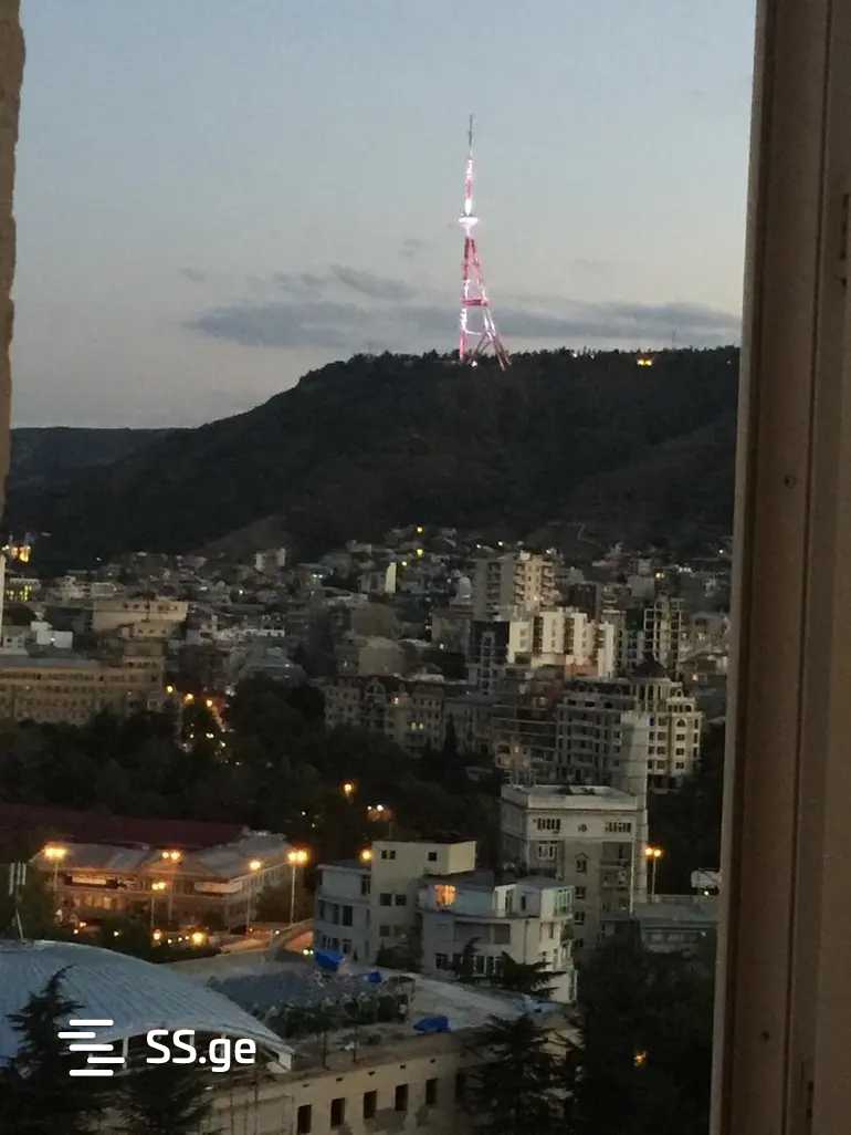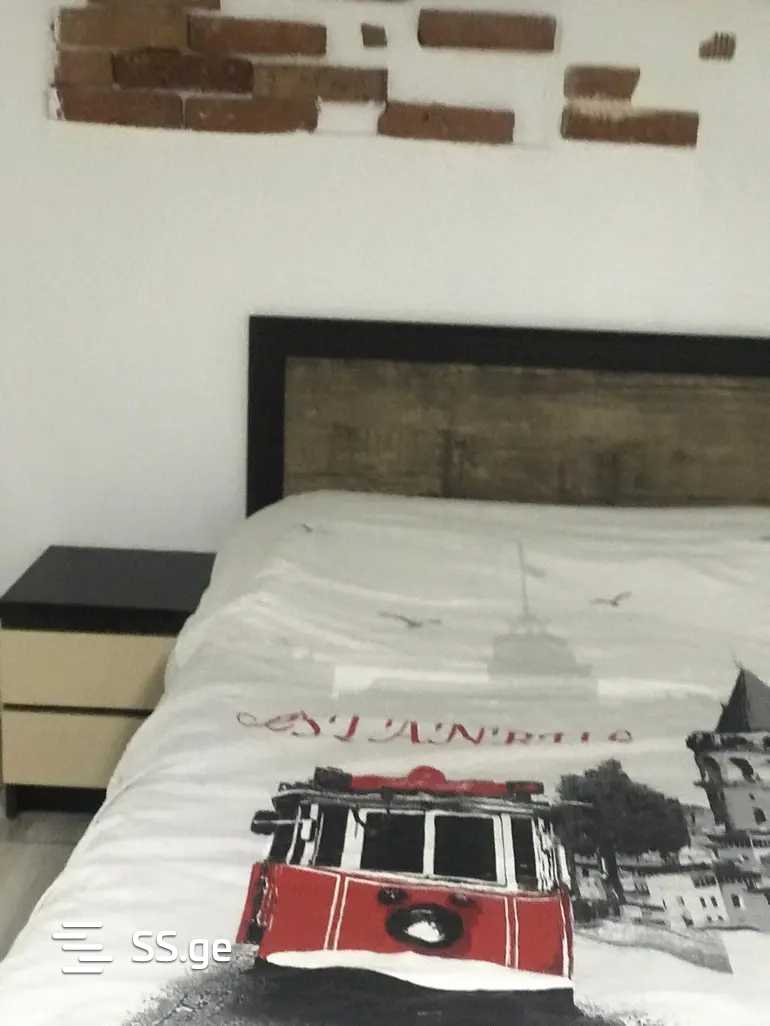 A flat is for sale in Saburtalo, next to the Sports Palace and behind McDonald's, on Alexidze Street. The flat is newly built with renovation, furniture, and appliances. It is a duplex type. The flat is registered as 54 sqm, but has a second floor with an official extension of 46 sqm.