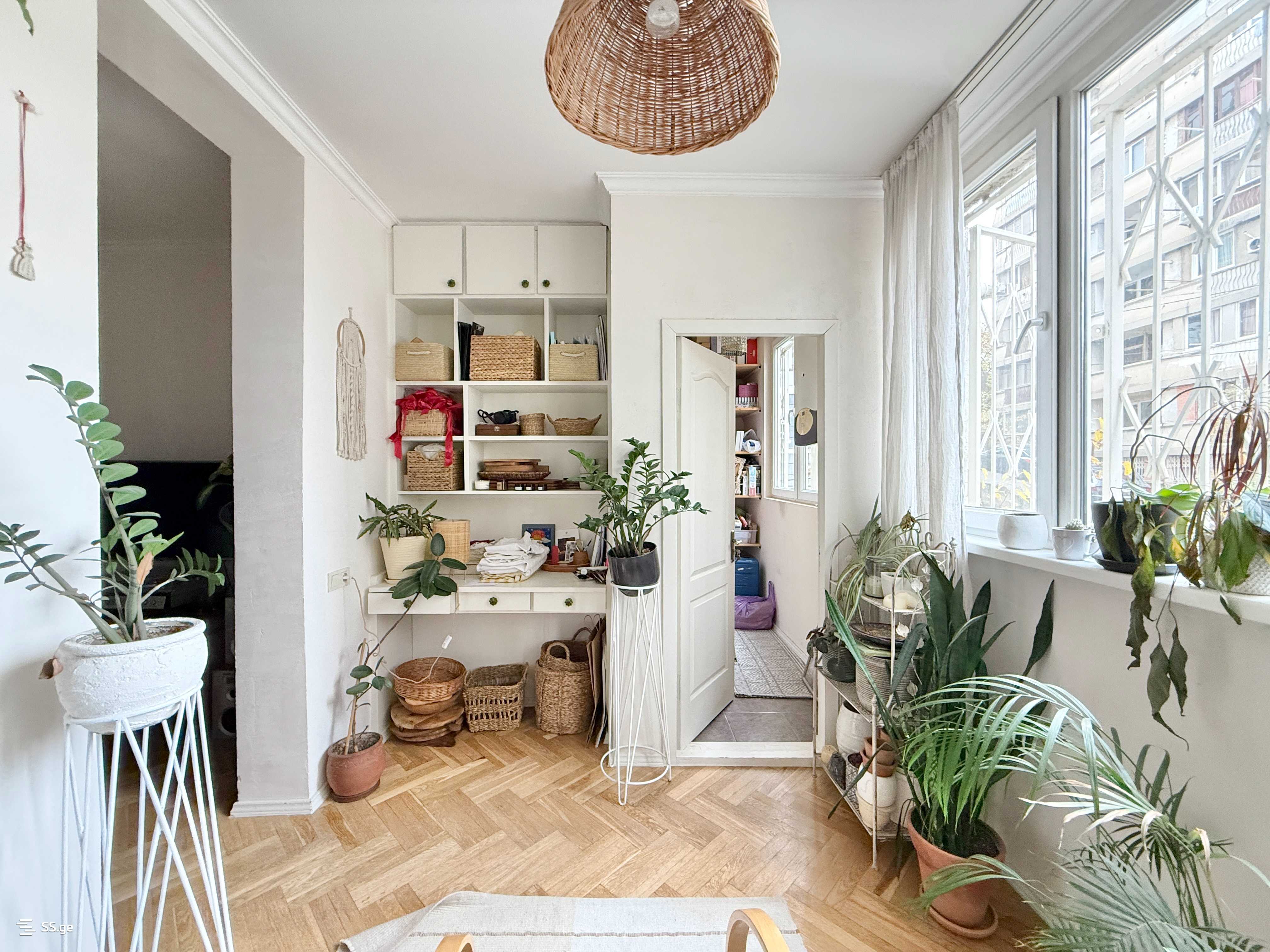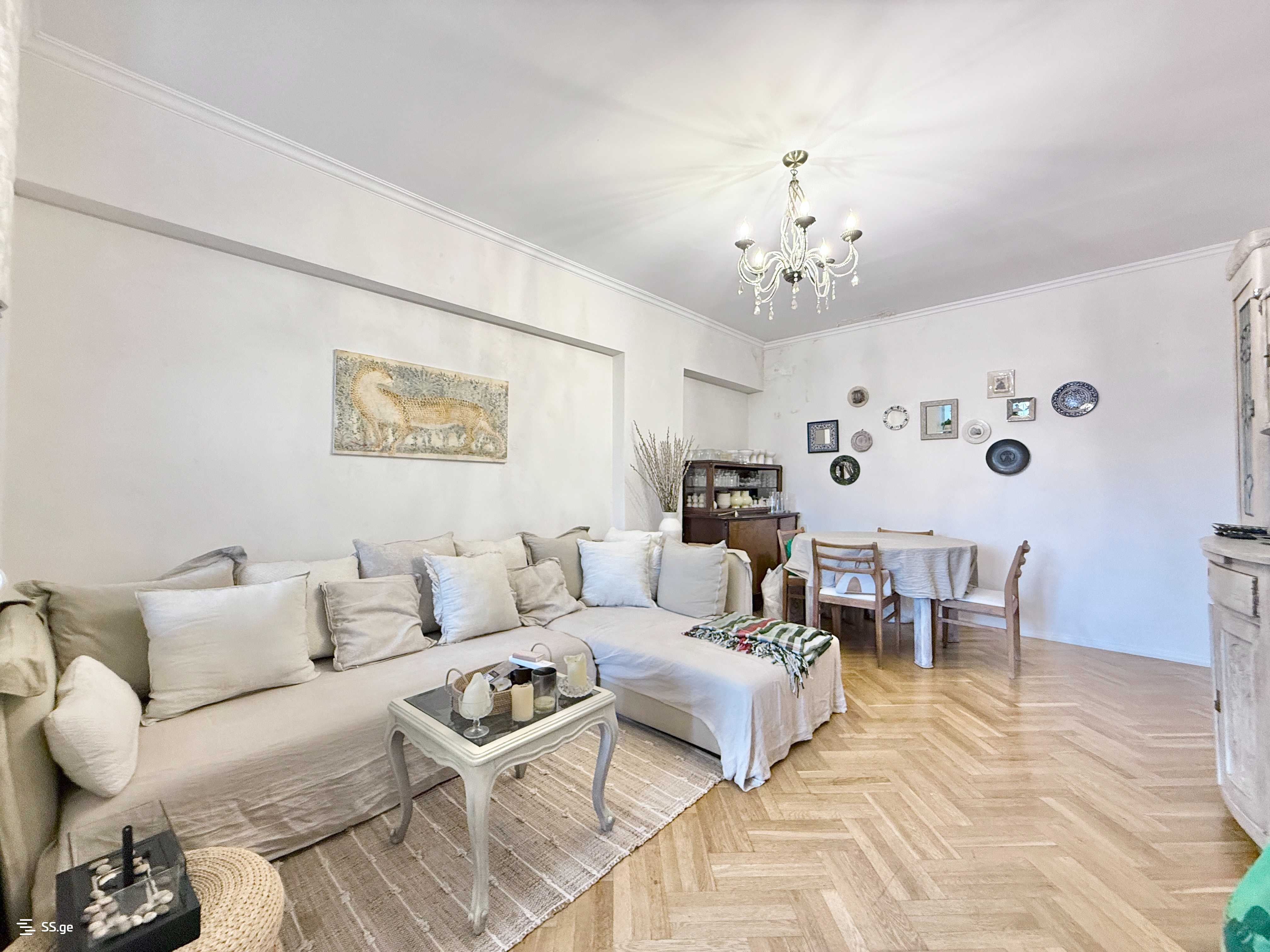 🏢 For sale: 2nd floor, 📐 73.8 m2, 🛏️ Bedroom, Living room, Balcony, 🍽️ Separate kitchen, Balcony with bars, 🚿 Wet area with shower, Spacious corridor, Newly renovated, Central heating, Windows on both sides, Bright apartment, in warm tones, wooden decor, parquet floor, built-in wardrobes, all necessary furniture and appliances. David