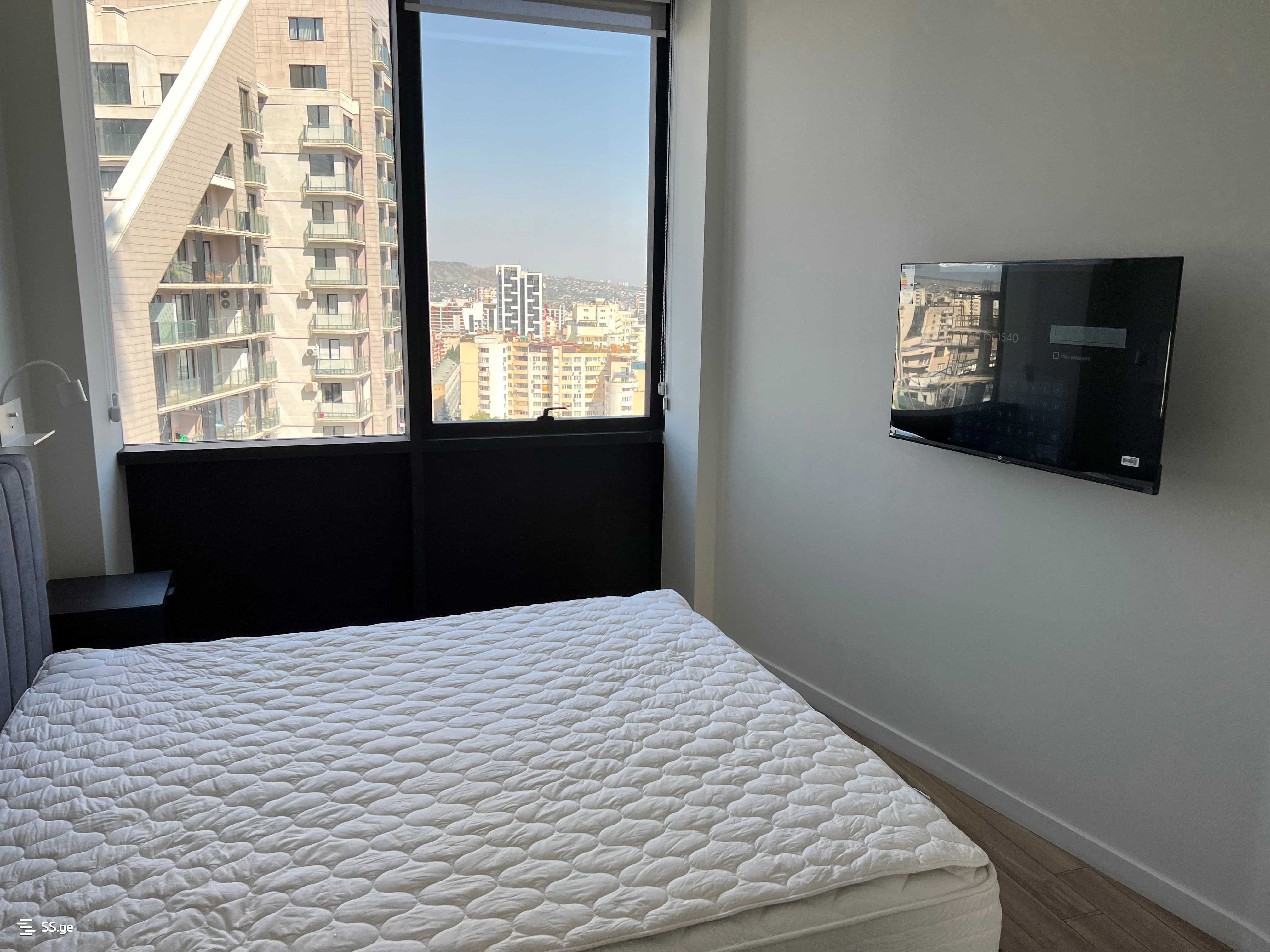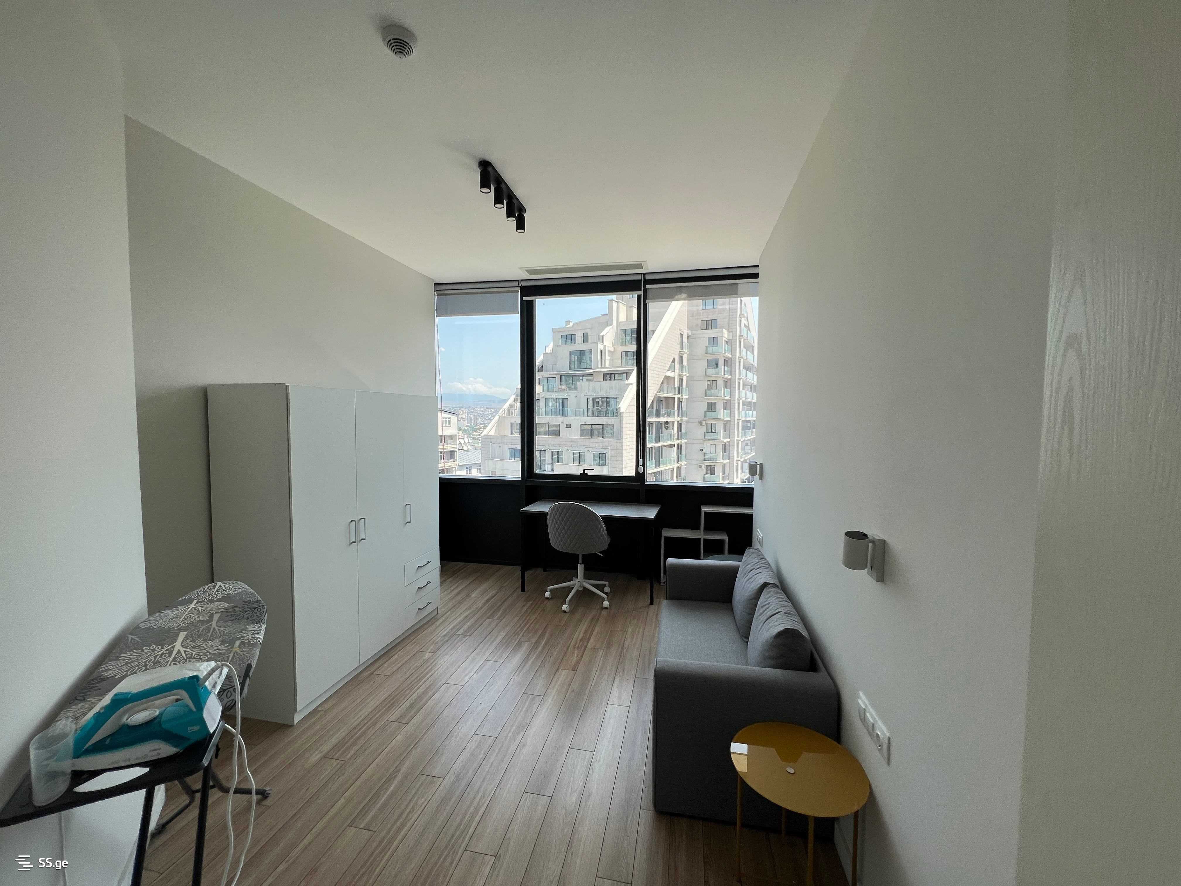 For sale is an apartment in Axis Tower. The apartment is located at 37m Chavchavadze Street (in the Agrohabi building). The apartment is equipped with necessary appliances and furniture for living. You will find a washing and drying machine, a dishwasher, an oven, a refrigerator, and more in the apartment. In total, there are 3 rooms: a living room, 1 main bedroom, and 1 bedroom that is a half-office with a pull-out sofa (a bed can be placed). The apartment has 2 bathrooms, one of which is a bathroom/toilet, and the other is just a toilet. The building houses the Axis wellness center, where you will find exercise machines and a swimming pool.