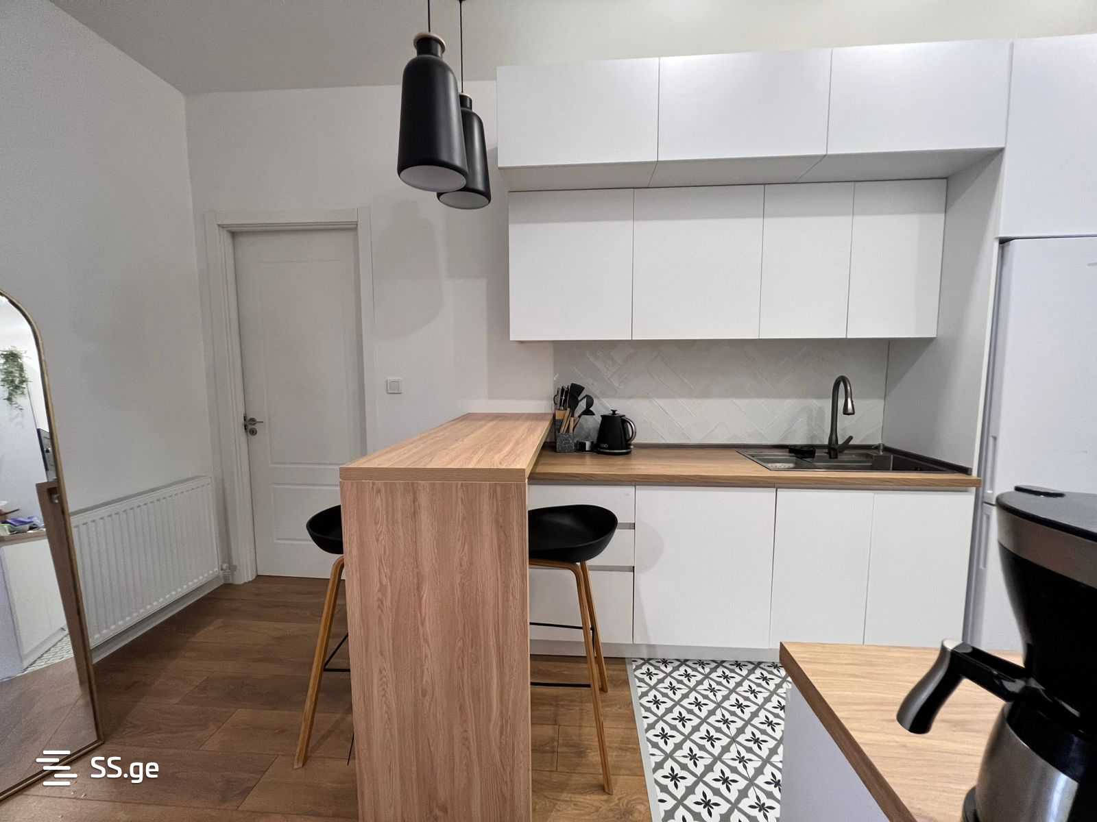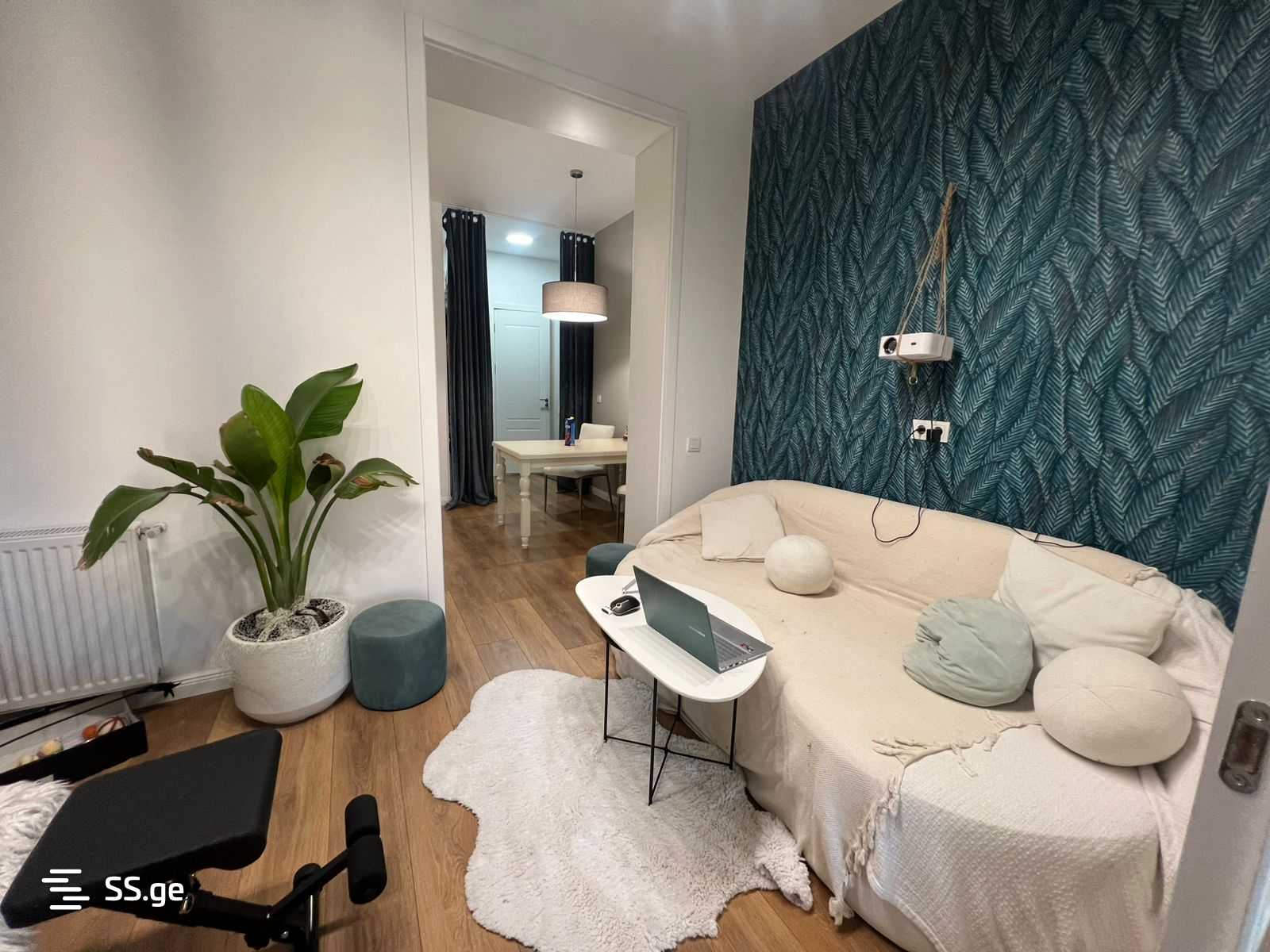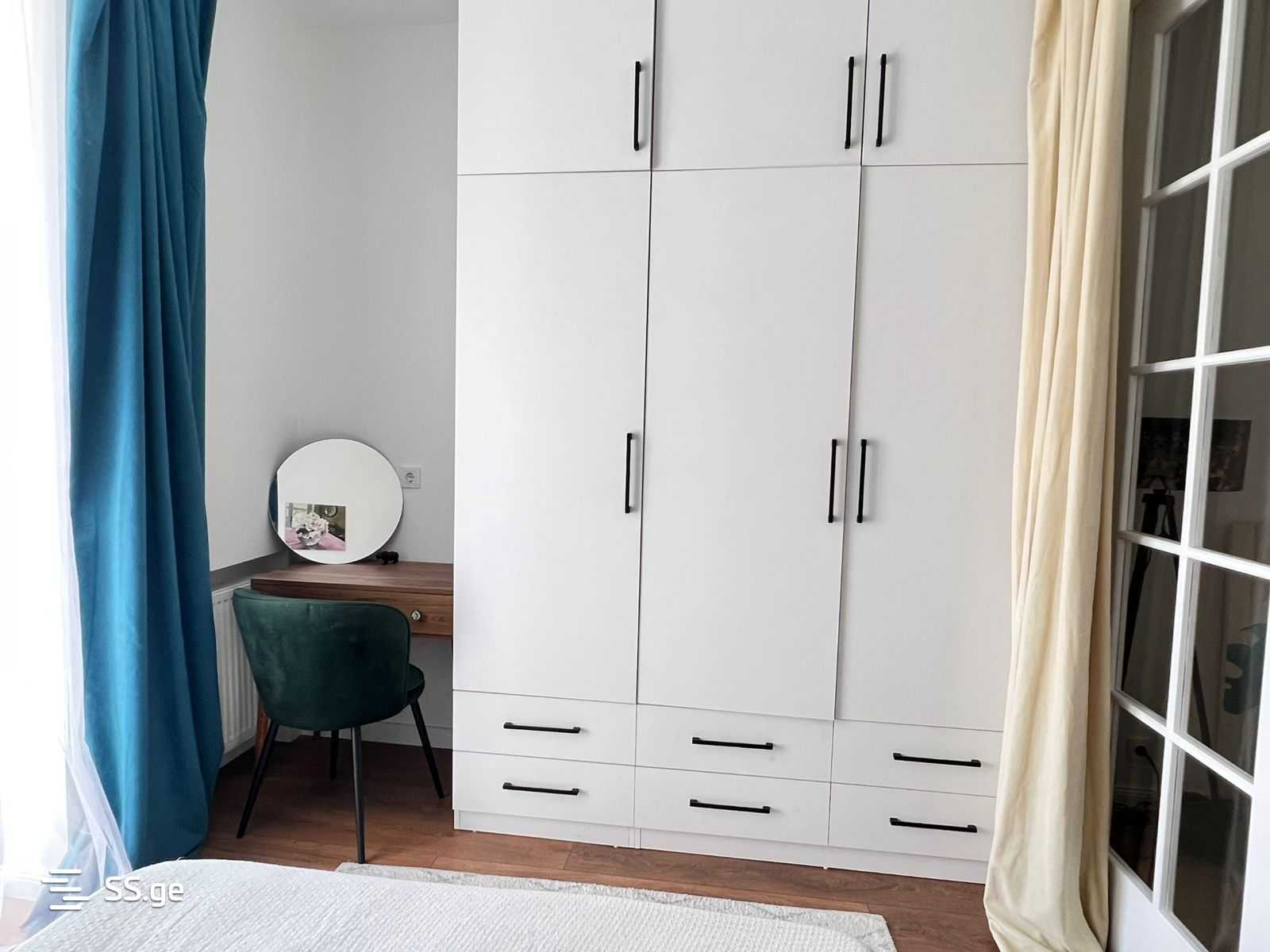 Two bedroom apartment with fresh repair. Each bedroom has a balcony. The third room is an exit. There is a storage room. The apartment is very nice and cozy. Equipment: Two air conditioners, a stove, a built-in microwave oven, a refrigerator, a large-capacity washing machine with a dryer. Bath! All furniture remains. The house is located at 3/15 Kobuleti Street, next to a round garden. I am the owner