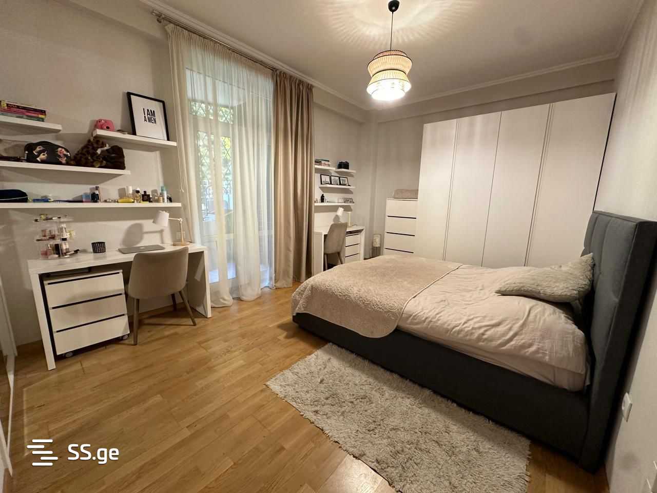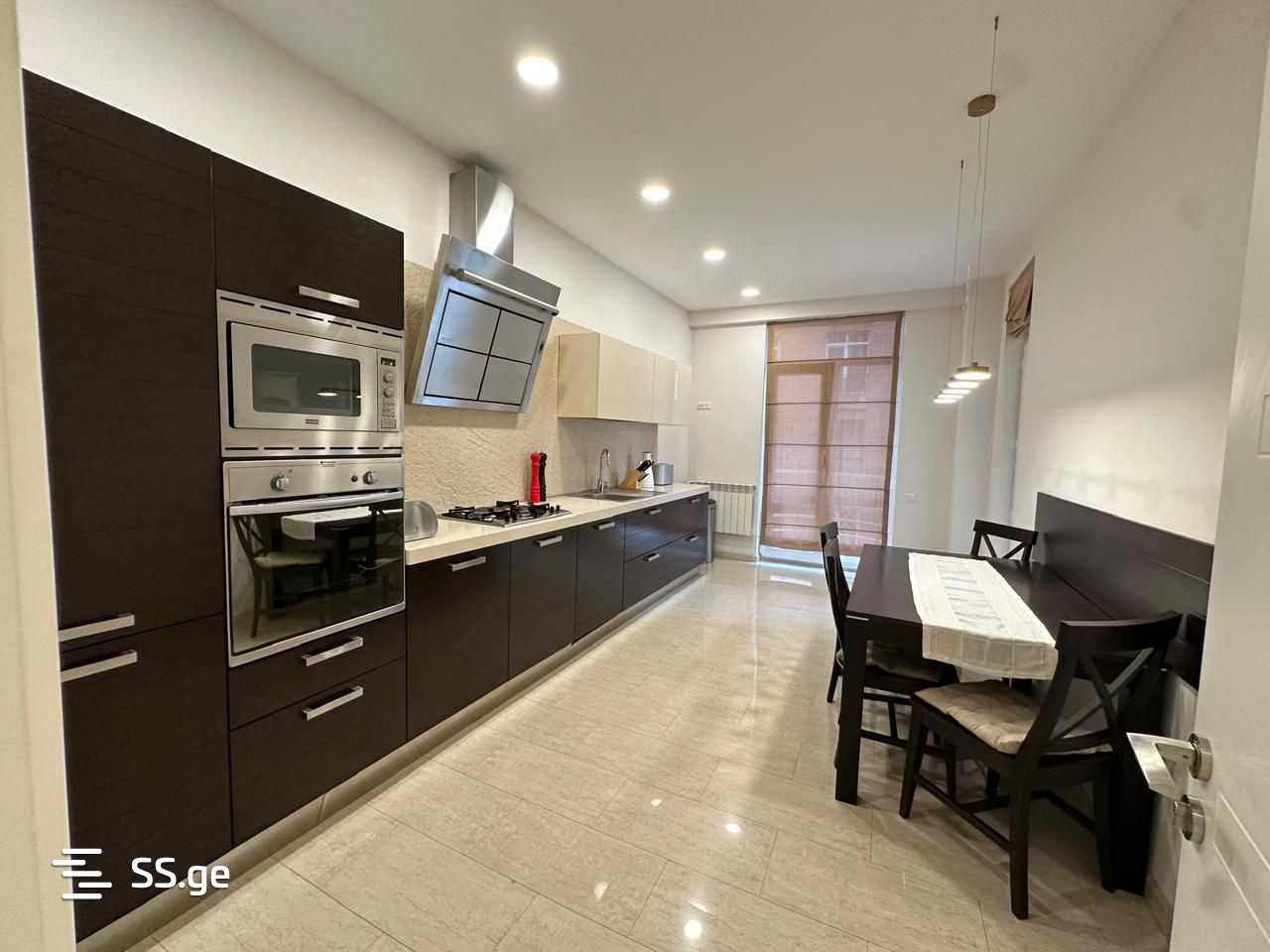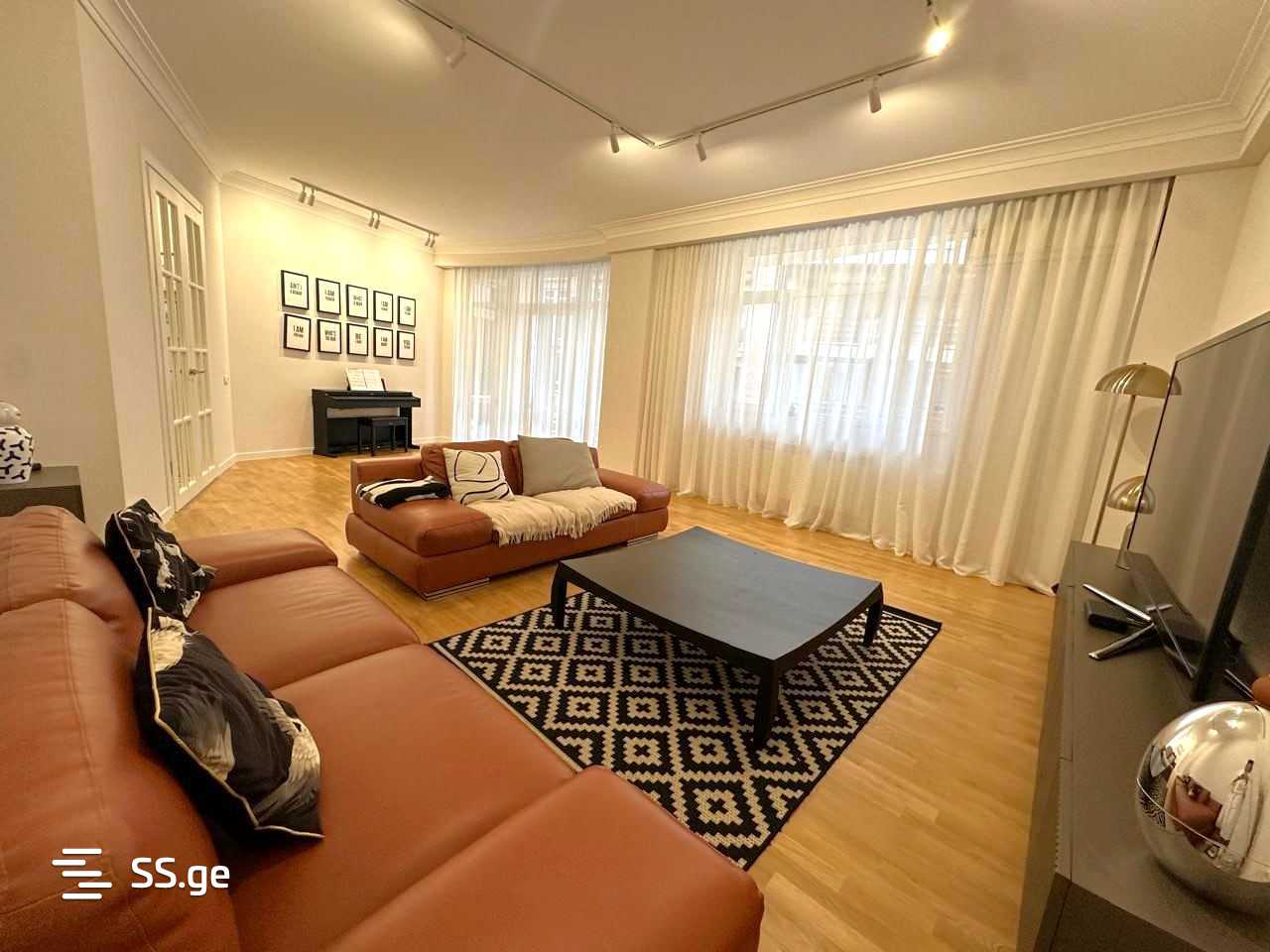 For sale by the owner - a non-standard good apartment of 160 sq.m. in Vake, near the Round Garden, on Mtskheta Street. 3 rooms, with an isolated kitchen, 2 bathrooms, a large living room, 2 bedrooms, and 3 balconies. 2(9) floors. The apartment comes with a parking space in the yard. Italian kitchen, built-in furniture, and bedrooms remain in the apartment and are included in the price.