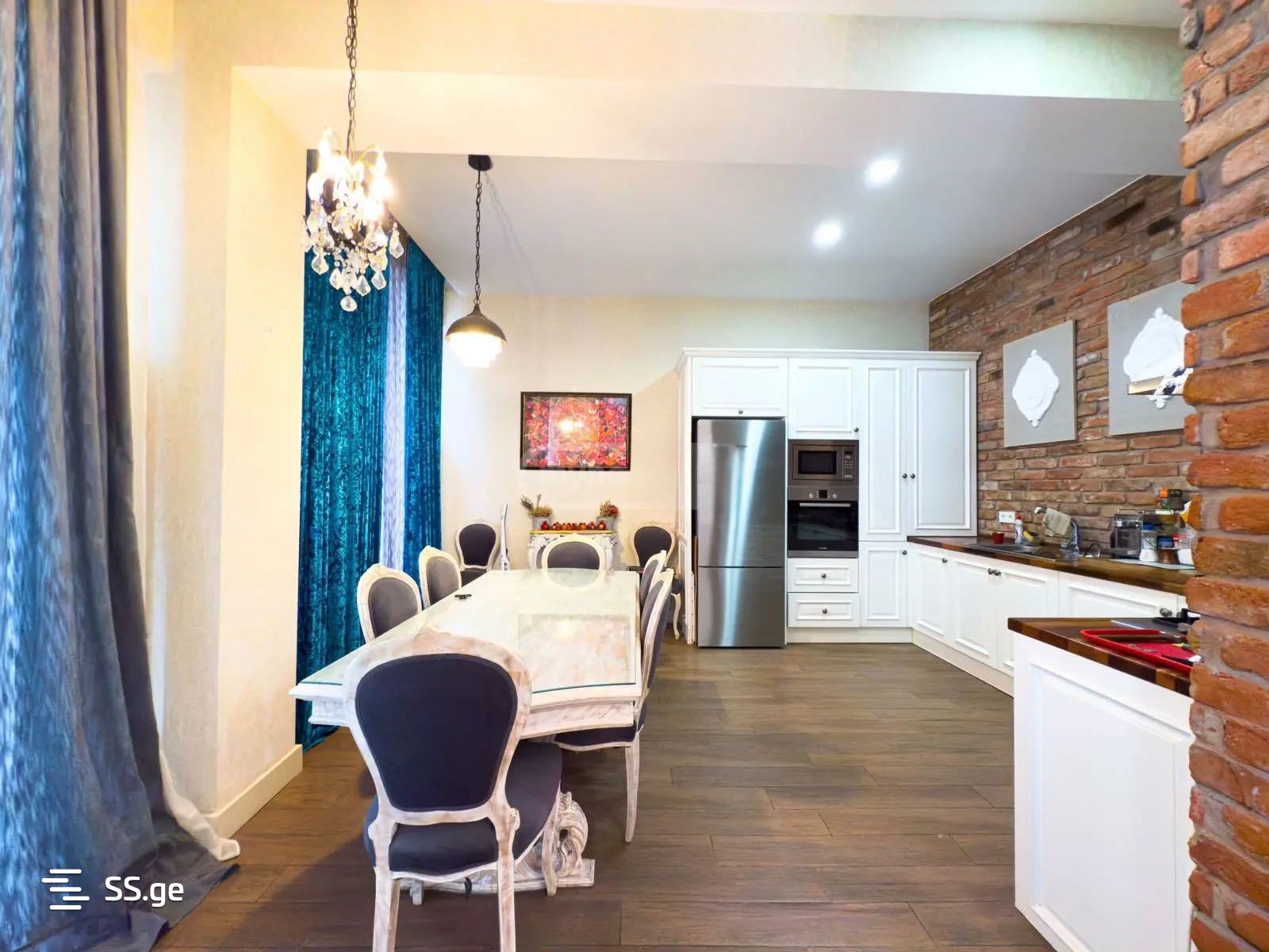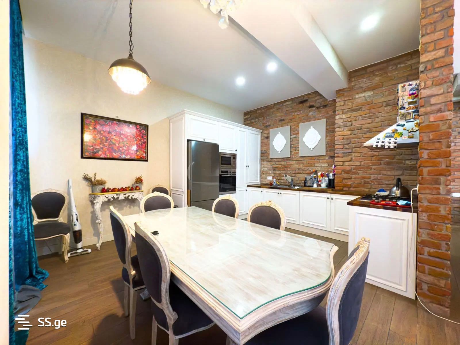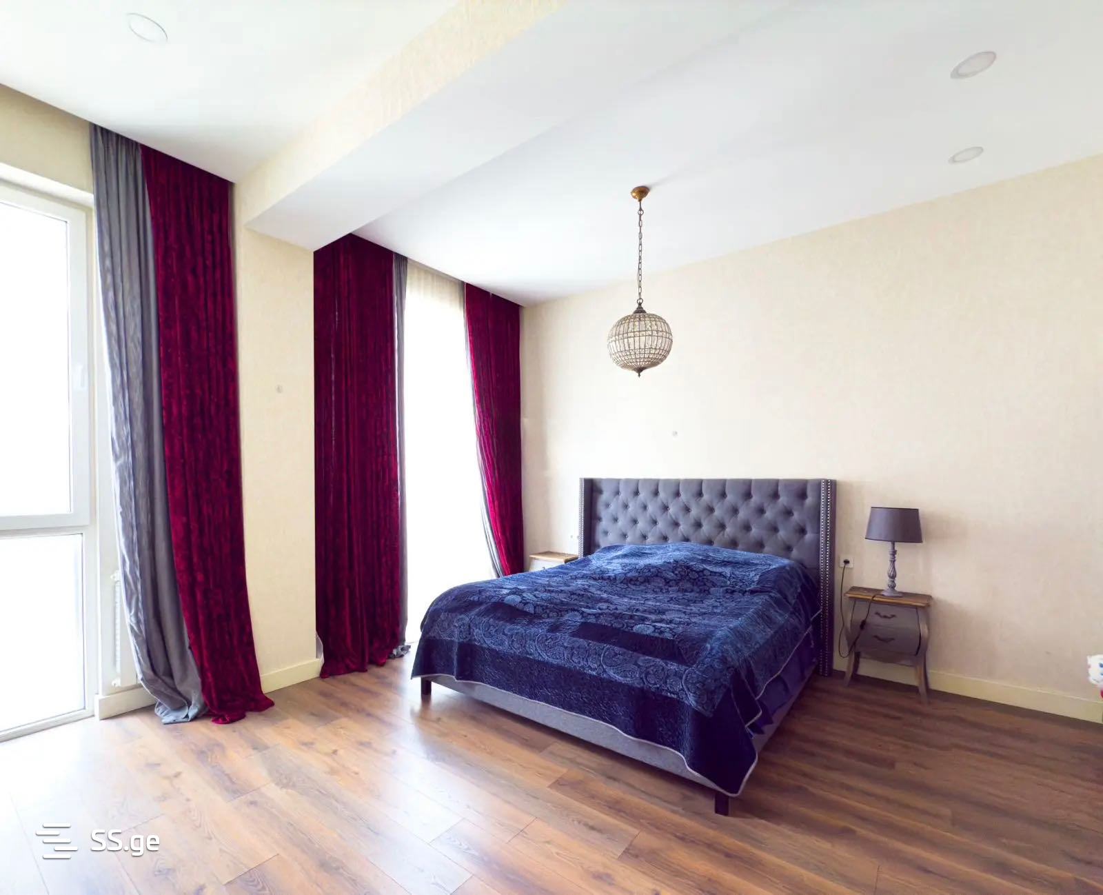 Apartment for sale in the most prestigious location, on Abashidze Street in the Axis complex. Duplex type, 2 bedrooms, 2 bathrooms, it is possible to completely isolate the kitchen, it has large stained glass windows throughout the house, it is very bright. One room has its own dressing room.
