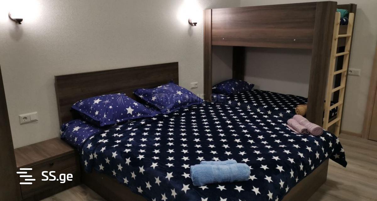 Newly built, well-furnished cottage for rent in Bakuriani (next to Hotel Melis). On the 1st floor there is a studio-type living room with a fireplace, kitchen corner and bathroom, on the 2nd floor there are two bedrooms with individual balconies and bathrooms, the cottage has all the necessary furniture and appliances (TV, refrigerator, stove, hood, washing machine), central heating, television, Internet. WIFI, as well as dishes, bed linen, towels (you will only need to bring personal items)