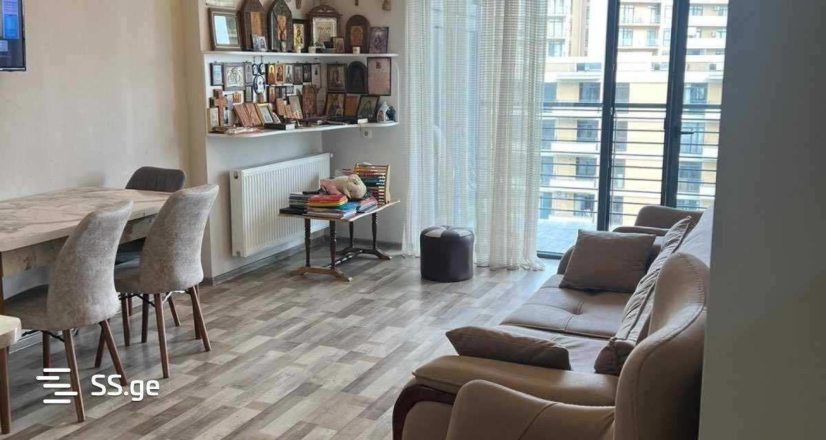 A newly built apartment of 90 sq/m is for rent in Gldani, in the French district, on Ipolitivanov street, 10 minutes' walk from M/s Akhmeteli. The building has a closed yard, a square, shops, a beauty salon, a pharmacy, and 24-hour security. Central heating has been installed in the apartment and the renovation has been completed.