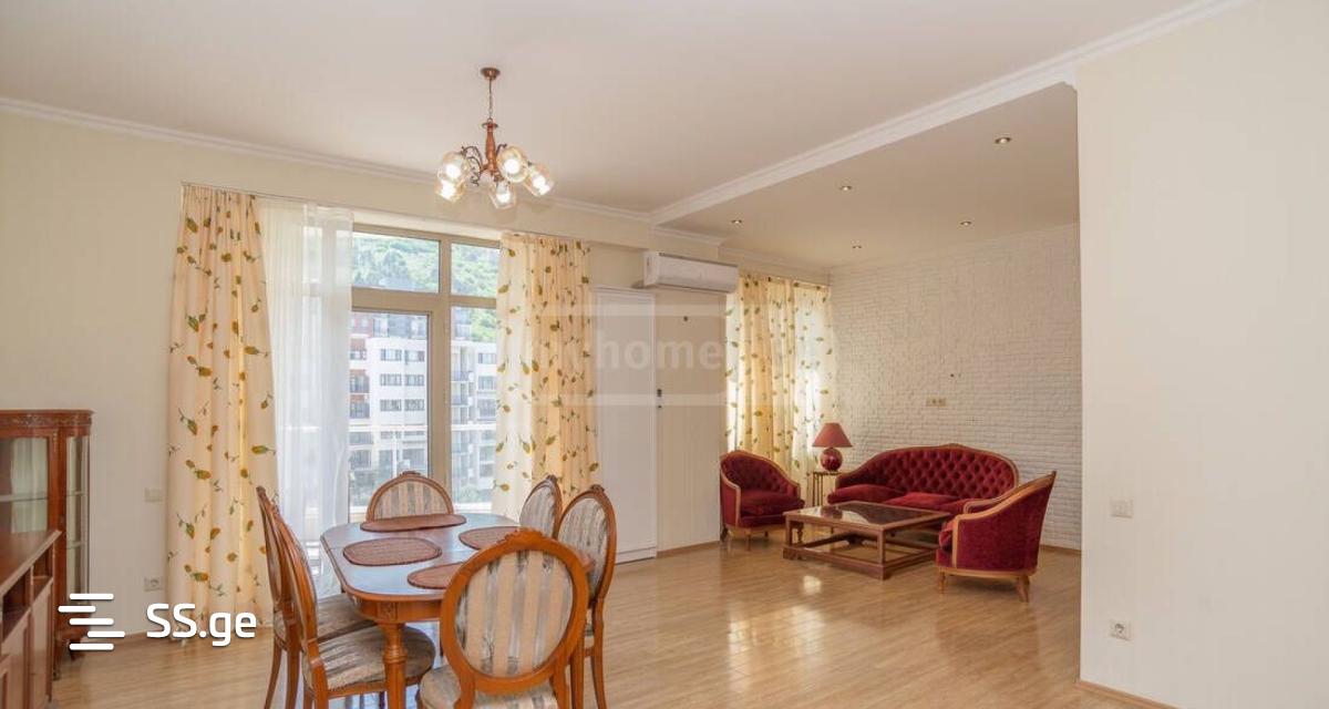 A beautiful, bright apartment is for rent, fully equipped with equipment and furniture, 5 minutes' walk from the Kus Tbi bend. with beautiful balconies and views. The apartment has two bedrooms, a dressing room, one bathroom, a large kitchen (separated).