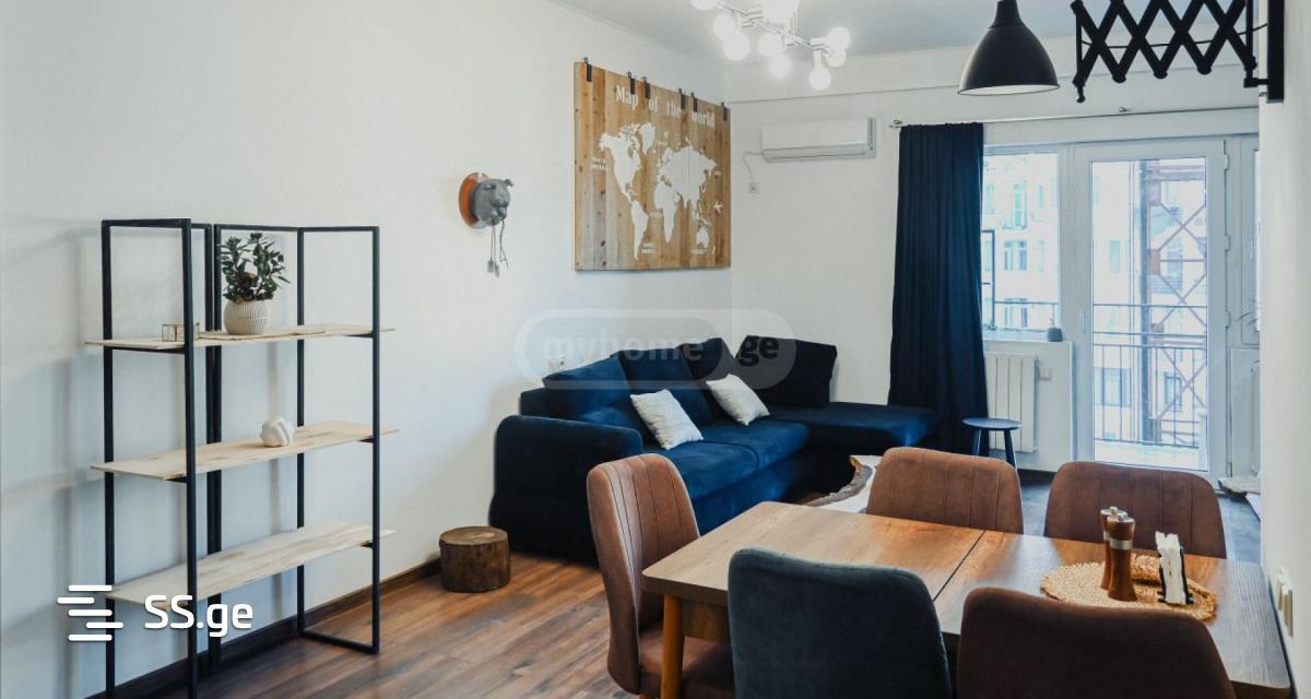 2 bedroom 2 bathroom newly renovated apartment, located in Vakeshi near Bugis Carrefour. The apartment is furnished and equipped. 55" Smart TV, convertible sofa, dishwasher, washing machine, 2 balconies, separate bathroom, air conditioning, convertible bedroom/office, parking and much more…