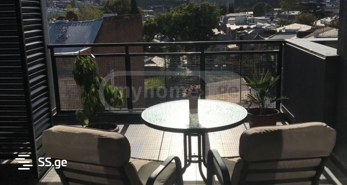 A furnished 2-bedroom apartment with a terrace, overlooking Mtatsminda, is for rent on Tsinamdshvili Street
