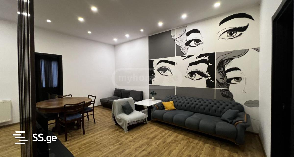 Newly renovated 3-room apartment for rent on Teudore Mgvdli Street. The apartment is provided with all the necessary furniture and appliances, has a cozy yard and is closed with a barrier.