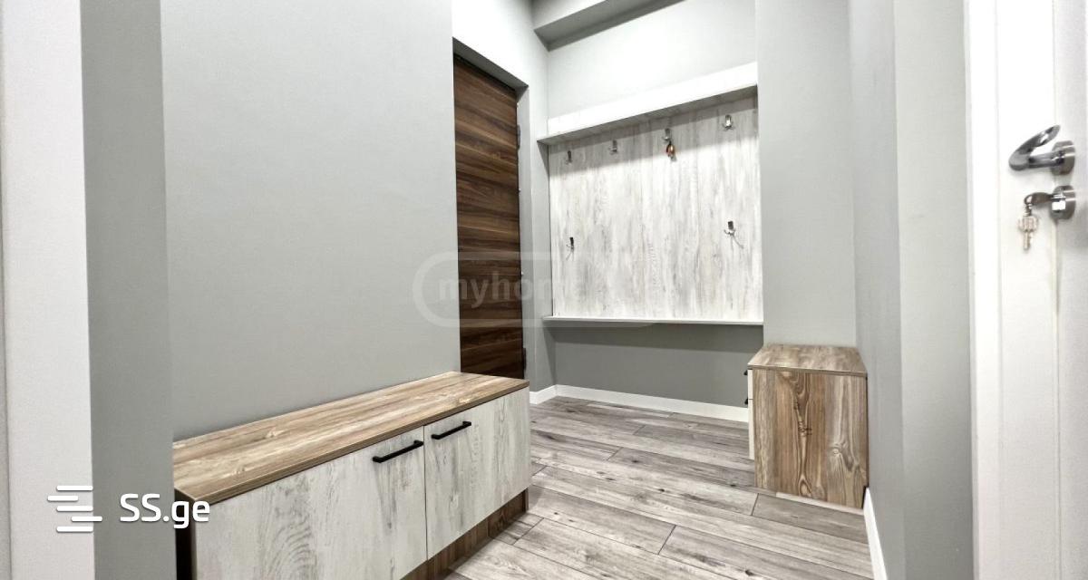 For rent, a 57.00 sq.m. furnished apartment with separate living room, separate kitchen and one bedroom in a newly built building near Akhmeteli metro station, opposite Carrefour.