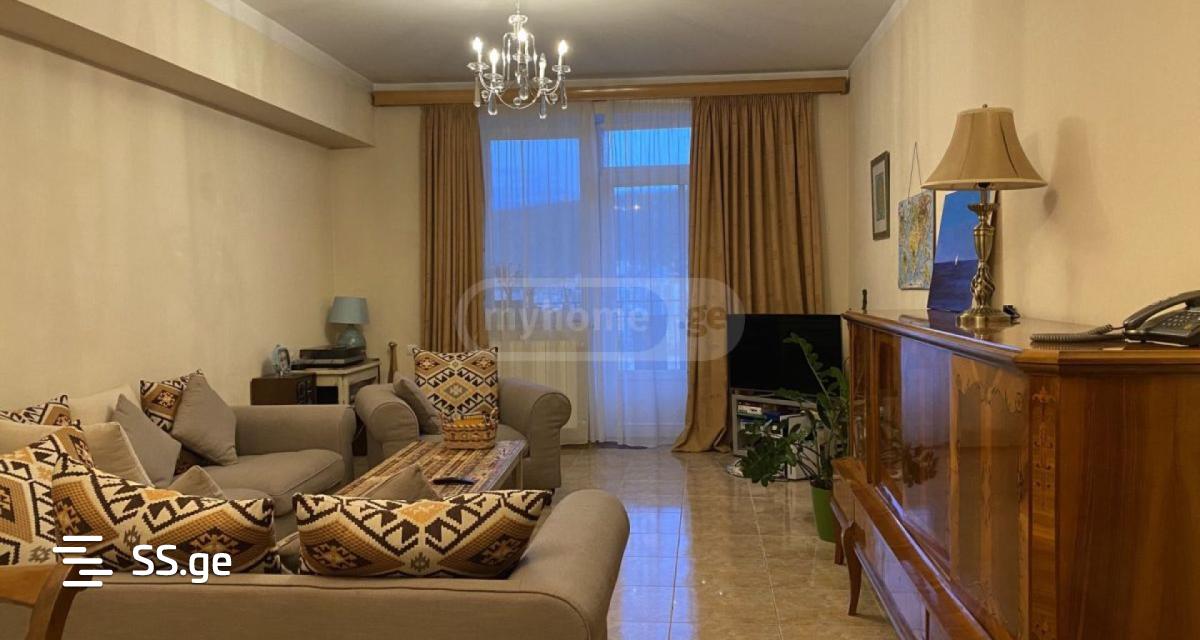 From the end of February, a 150 sq. m. apartment is for rent, in an old building, on Ikalto hill, Saburtalo. The apartment is old renovated, but clean and tidy, with a newly renovated bathroom. The building has an ideal location and a view of the entire city. In 5 minutes on foot, you can reach Peking near Bukia Bagh, Dolidze Street or Gamrekeli Street. There are several chain markets, a school, a kindergarten and a bus stop near the building. The total area of the apartment is 150 sq.m., of which the balcony area is 20 sq.m., and the living area is about 130 sq.m., which includes three bedrooms, a large living room, a separate kitchen and two bathrooms. Most of the appliances and furniture remain in the apartment (except for a few units). The apartment is very bright, warm and cozy. P.S. The apartment can be rented only from February.