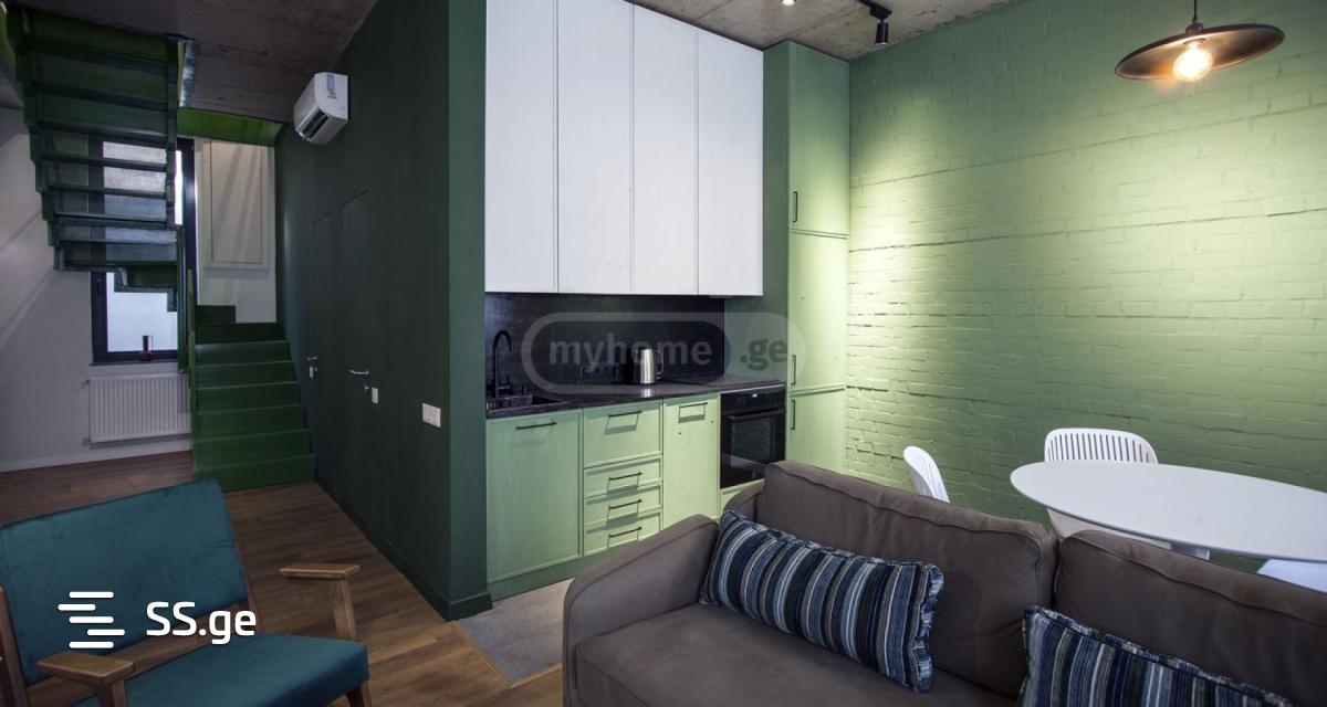 Newly renovated 2-bedroom duplex apartment for rent in Orbeliani Square, in the central tourist area, right next to Orbeliani Garden. The apartment is of duplex type and on the second floor there is a large bedroom with a working area, while the main space has a studio living room, a bedroom and a bathroom. The apartment is equipped with all necessary equipment, appliances and furniture (including dishwasher and air conditioners) * Available on January 5, 2024