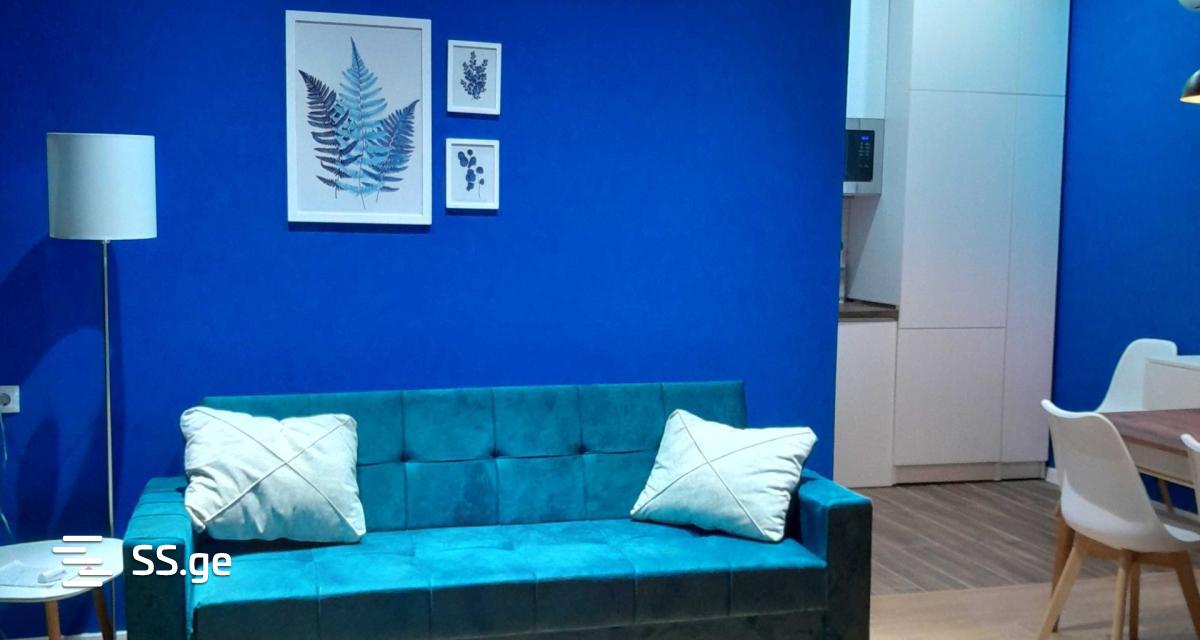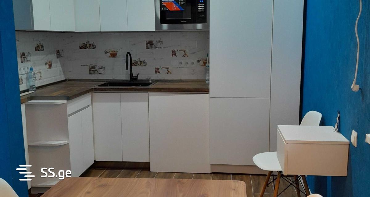 The apartment has full comfort for living. It has two bedrooms and an open studio living room and kitchen. The kitchen is also separated.