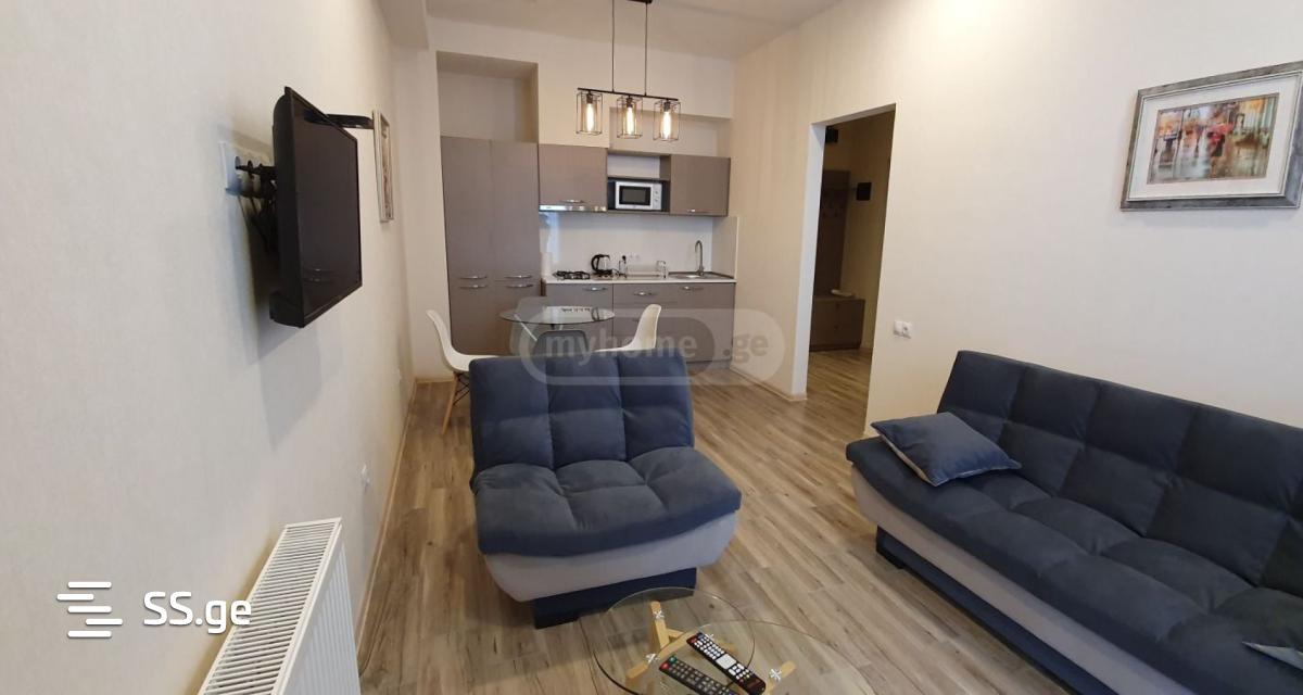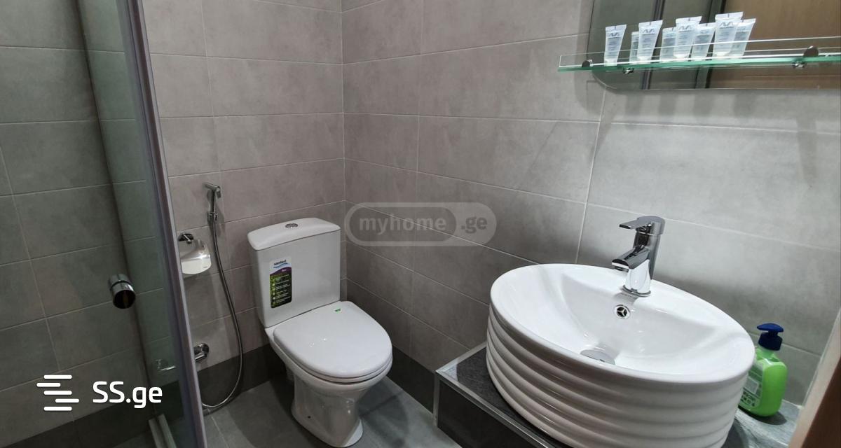 for rent! 3-room studio apartment in Tbilisi, 15 Giorgi Nikoladze St. (former: 1 Dimitri Gulia St.), newly renovated, with two bedrooms, balcony, in a new building, 5th floor, full comfort.