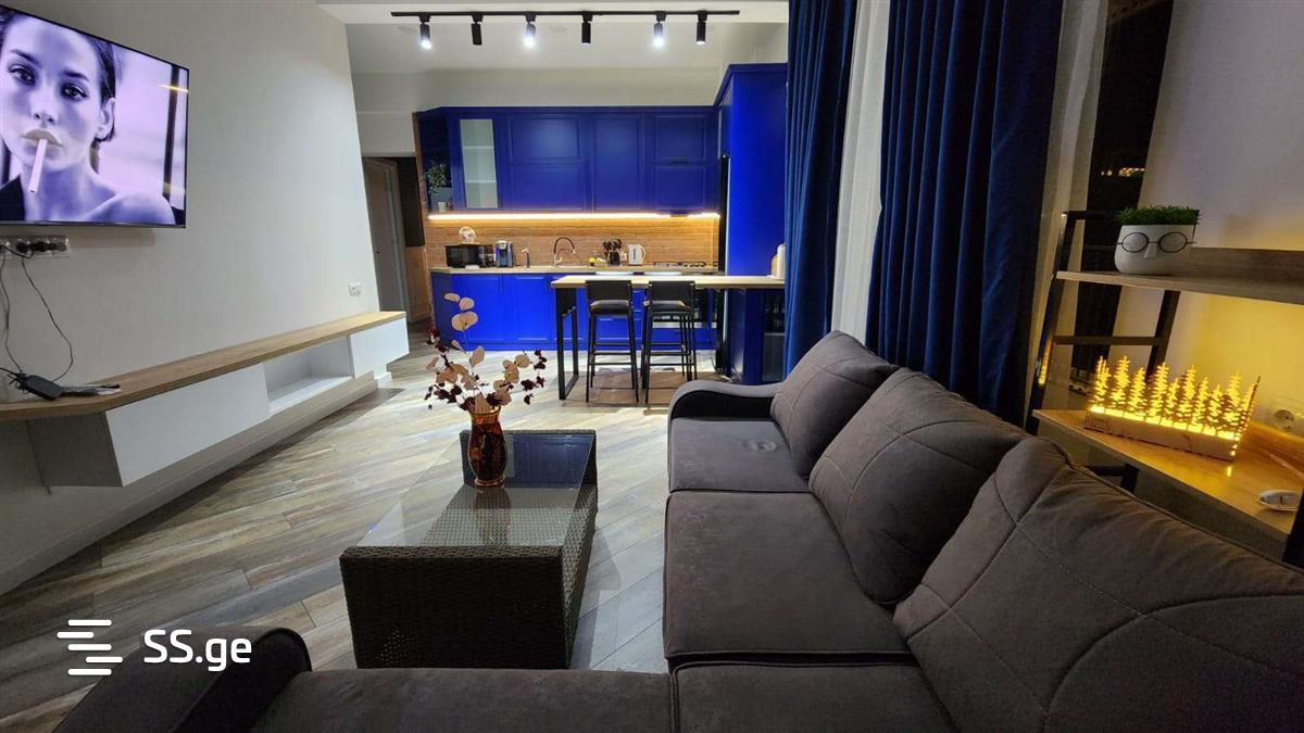 Apartment for rent e. on Amashukeli Street. With a large panoramic balcony and the best views of the entire city. The apartment has undergone high-quality repairs and is equipped with all necessary communications, household equipment. with parking for one car. The complex is located near the Lisi lake, 5 minutes walk from the recreational and rest area, along the road connecting Nutsubidze and Vaslijivri, near the "Verde" cafe.